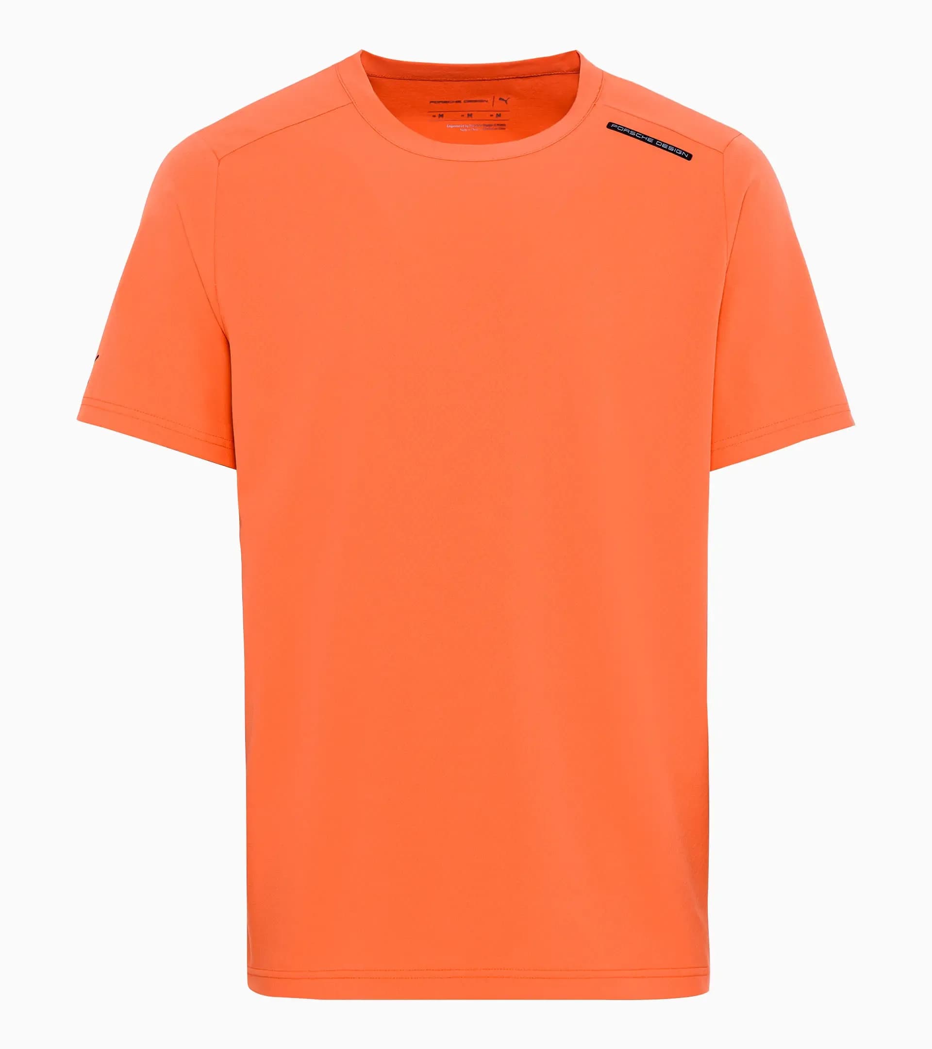 Performance in Design und Funktion: Das Porsche Design Active T-Shirt vereint die innovative ULTRAWEAVE-Technologie mit dem Tragekomfort des 4-Wege-Stretch-Materials. Es begeistert mit seinem extrem geringen Gewicht mit dryCELL® Feuchtigkeitsmanagement und maximaler Bewegungsfreiheit. Der technische Schnitt im unteren Rückenbereich rundet den modernen Performance-Look ab. Ein praktisches Highlight ist die Netztasche in der Mitte der Rücken-Innenseite, in die sich das Shirt mit wenigen Handgriffen packen lässt.