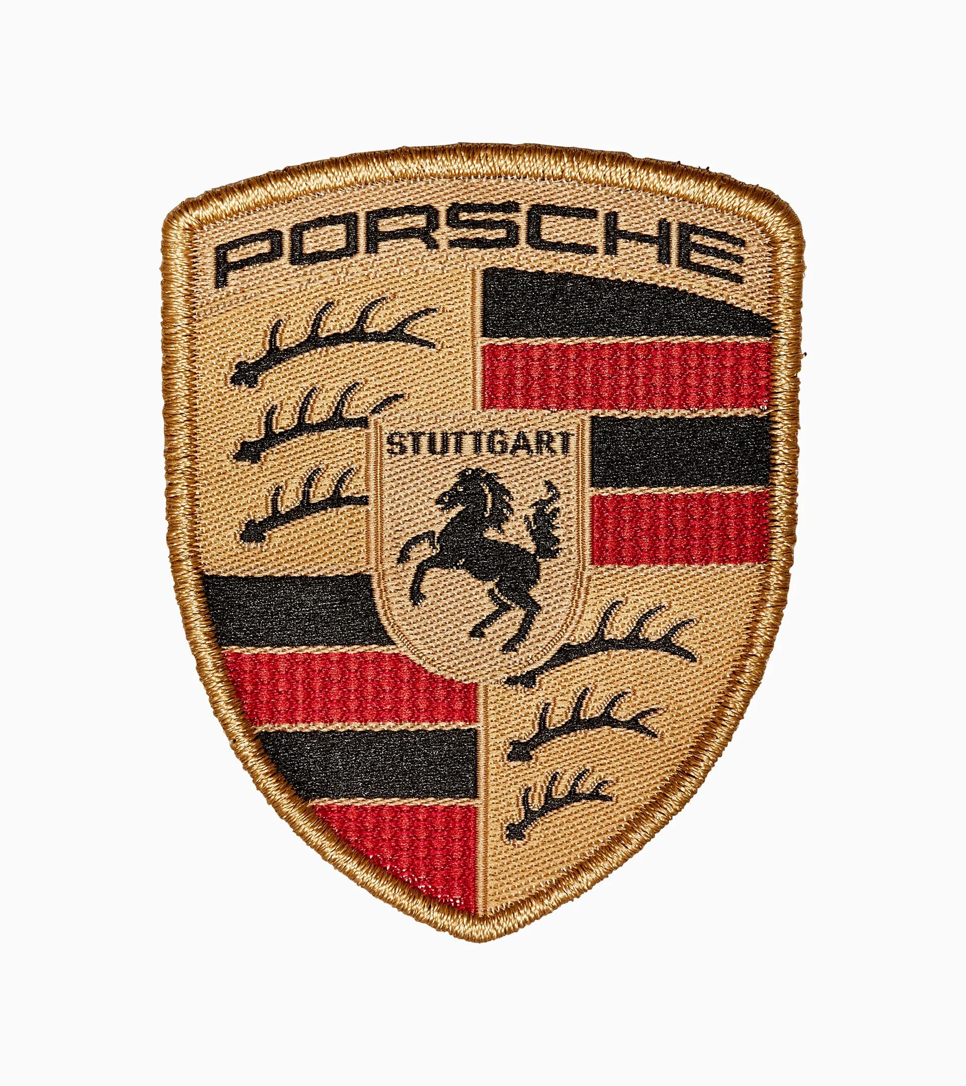 Die Faszination Porsche offen zur Schau stellen: Aufnäher in Form des Porsche Wappens.