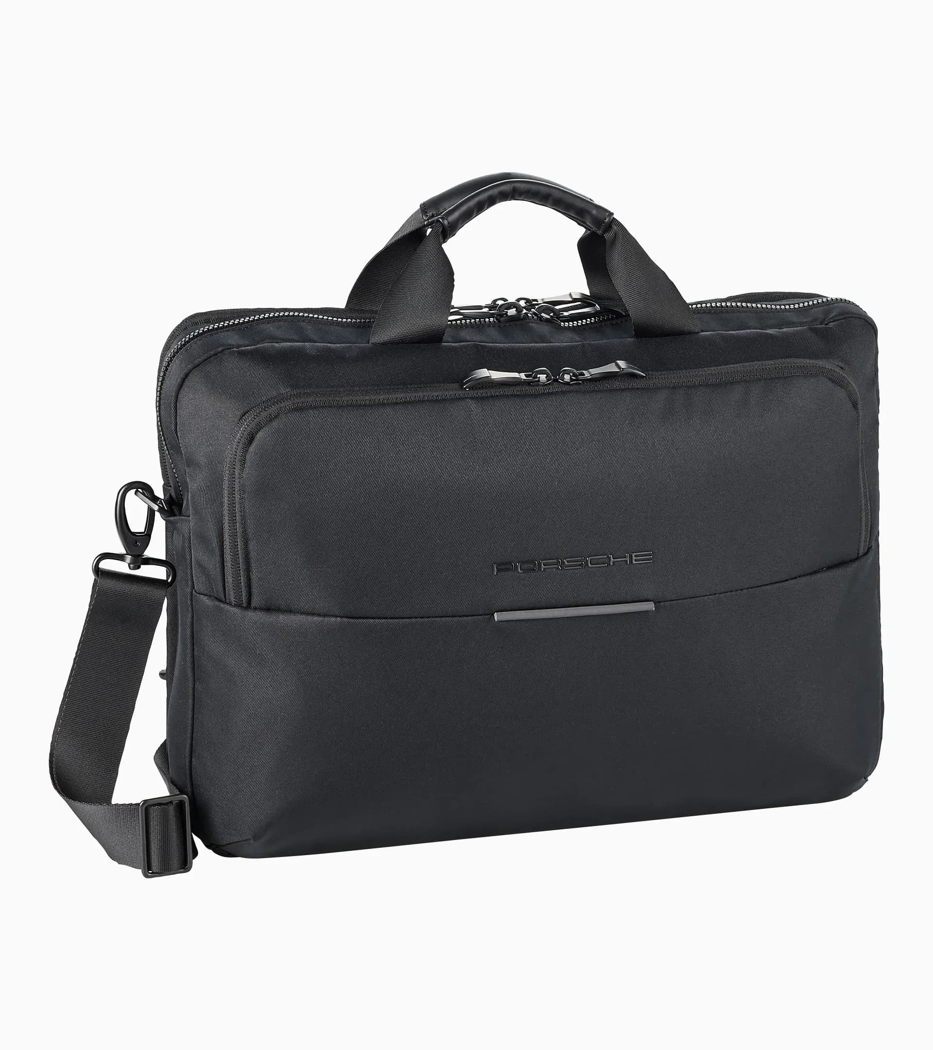 Minimalismus trifft auf Eleganz: Die Essential Collection mit puristischem Design, das den Porsche-Spirit in seiner reinsten Form einfängt. Hergestellt aus recyceltem Twill, verkörpert die Business-Briefbag Nachhaltigkeit gepaart mit moderner Funktionalität. Ihr monochromer All-Over-Look zeichnet sich durch ein Porsche Schriftzug aus Rubber und eine reflektierende Zuglasche auf der Vorderseite aus. Die Reißverschlusstasche mit RFID-Schutz und diverse Einsteckfächer sorgen für optimale Organisation von Zubehör und Dokumenten. Die markanten Zipperpuller aus Metall sind inspiriert von den original Porsche Schlepphebeln und setzen besondere optische Akzente. Ein gepolstertes Notebook-Fach innen bis 15 Zoll mit Klettverschluss und gebrandeter Zuglasche garantieren Sicherheit für das Gerät. Ausgestattet mit Trolley-Link, zwei Tragegriffen sowie einem abnehmbaren, längenverstellbaren Schultergurt mit gepolstertem Schulterteil, bietet die Bag Komfort und Flexibilität auf jeder Geschäftsreise.