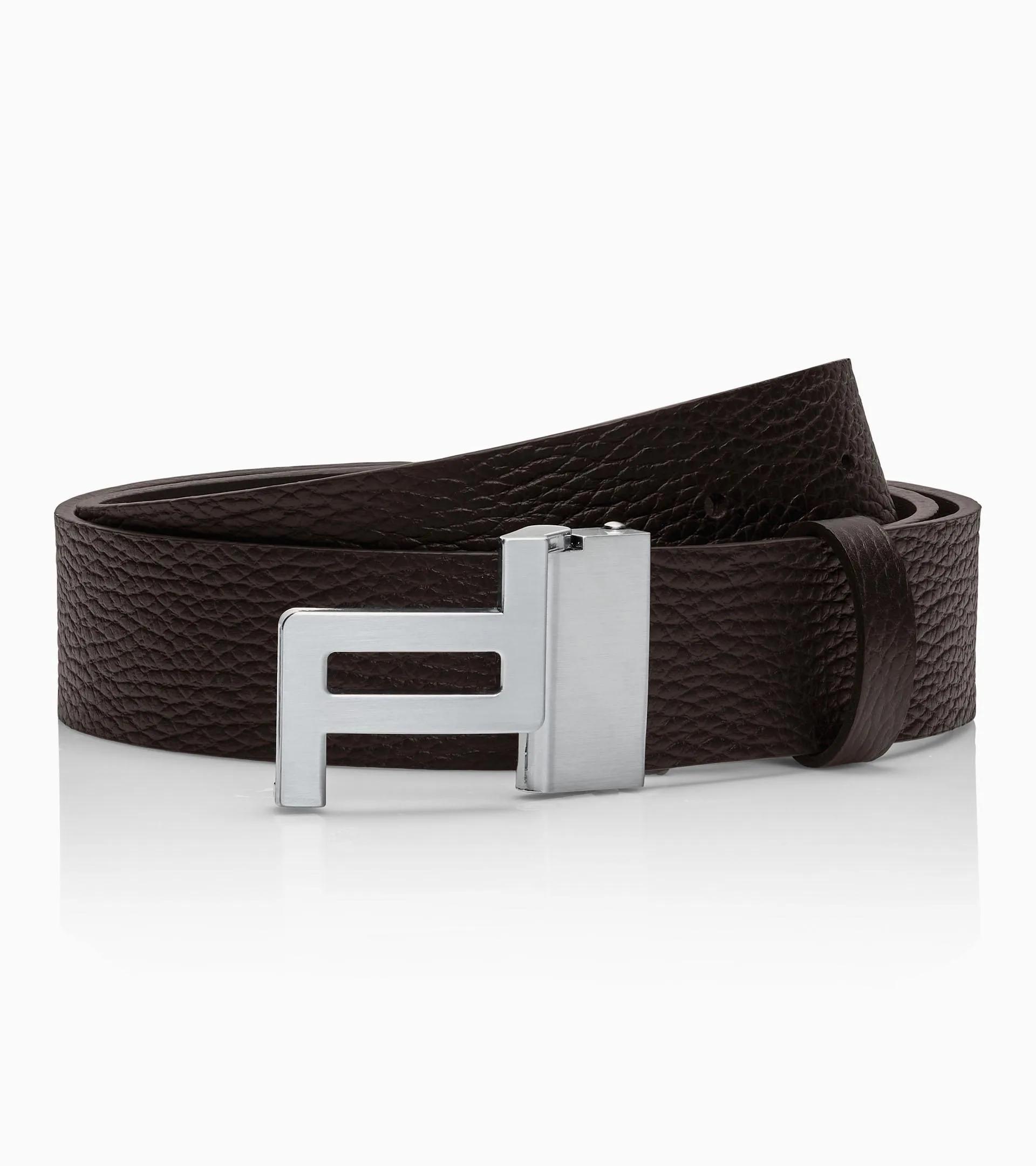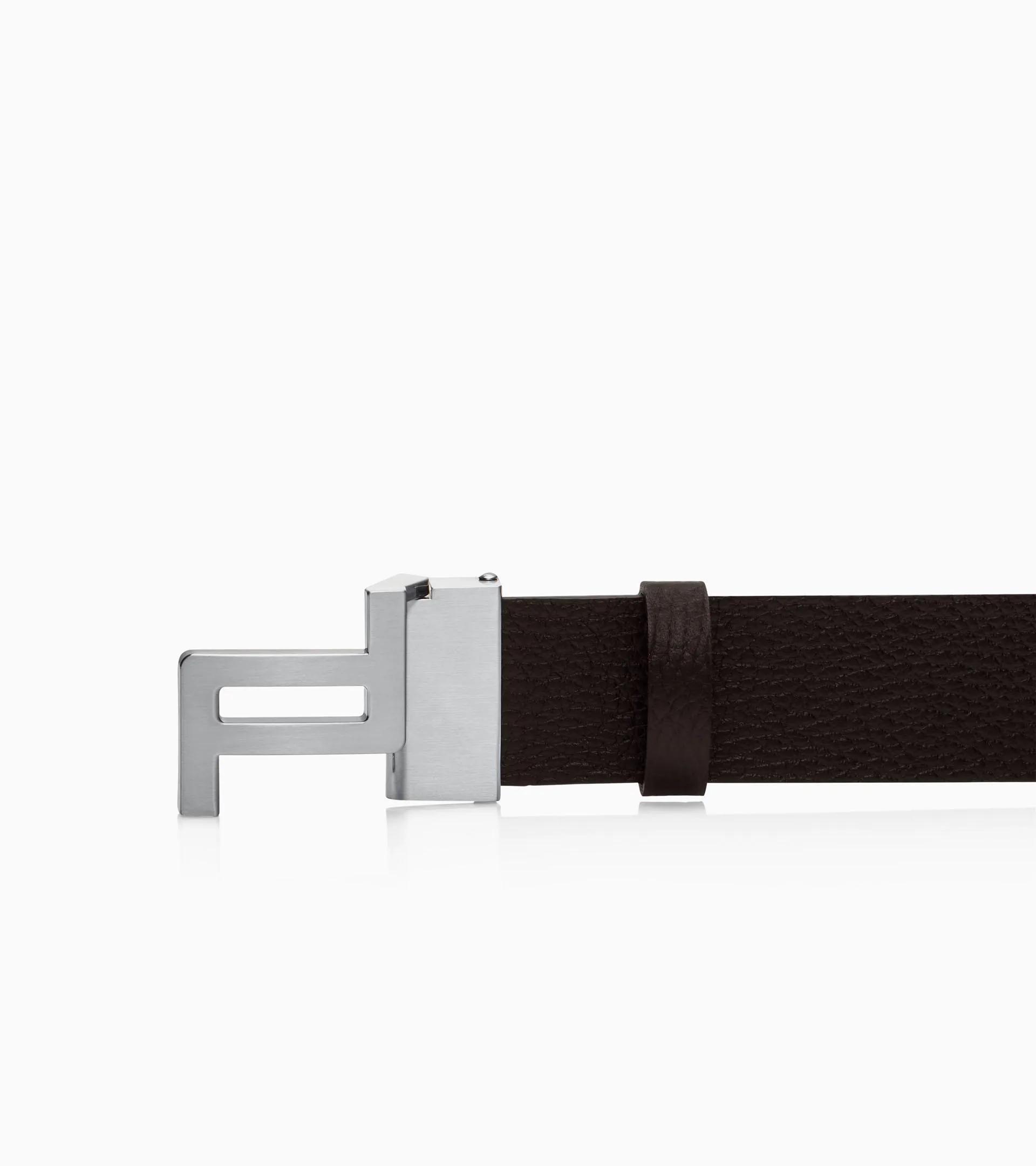Stilvolles Statement: Wendegürtel für Herren mit Porsche Design Logo-Schließe und zwei Tragevarianten: hochwertig genarbtes Leder oder Glattleder. Breite 35 mm.
