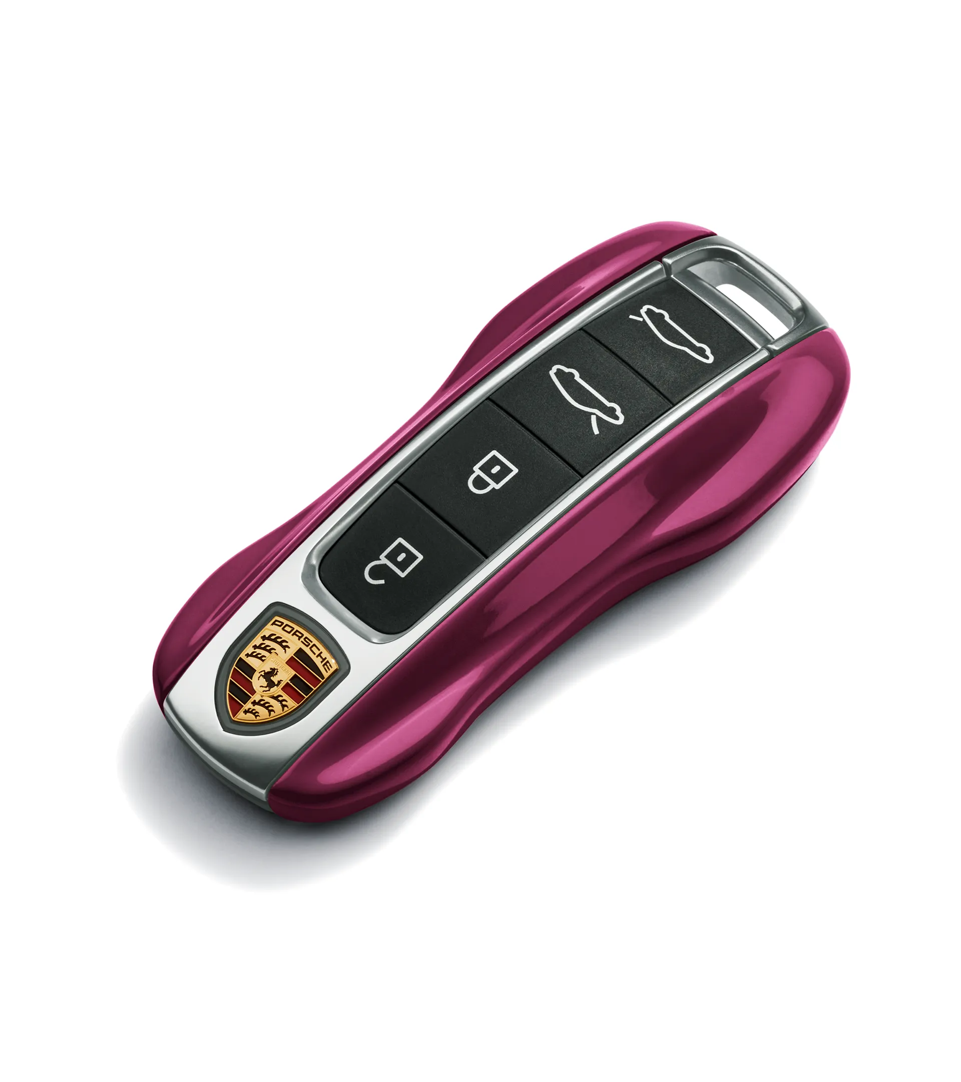 Die lackierten Seitenwangen in ausgewählten Exterieurfarben sind die perfekte Ergänzung für Ihren Porsche Fahrzeugschlüssel.