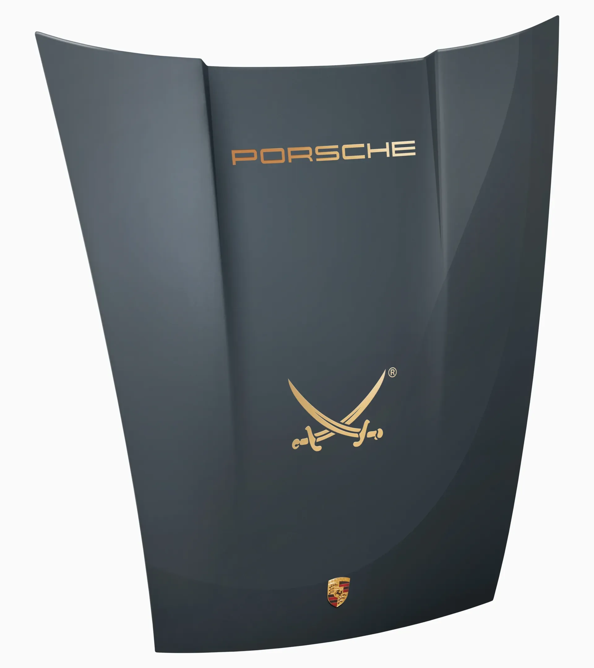 Ein Stück Porsche-Geschichte für zu Hause aus der Porsche Sansibar Kollektion: Die Fronthaube des Porsche 911 (G-Modell) im Sansibar-Design ist eindrucksvolles Dekoobjekt und Magnetwand zugleich. Der Porsche Schriftzug und das Porsche Wappen vollenden ihr originalgetreues, stylisches Design.