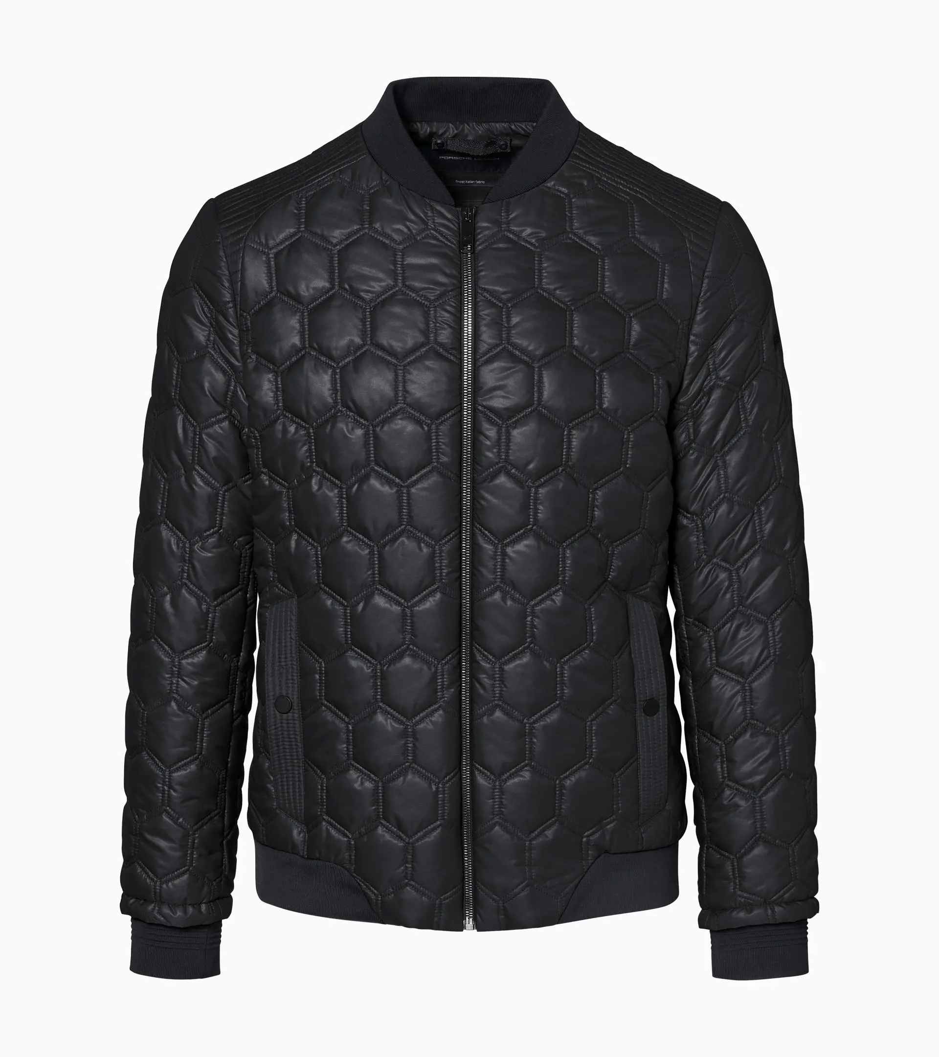 Die leichte Alternative zum Porsche Design Titan Structured Leather Bomber: die Porsche Design Hexagon Quilted Jacket aus recyceltem Nylon mit patentierter, daunenfreier Wattierung. Die maßgefertigten Steppungen in der Sechseck-Gitterstruktur von Titan verleihen dem Herren-Blouson einen technischen, modernen Look. Design-Details wie der Untertritt aus echtem Porsche Gurtmaterial, Porsche Design Paspelierungen im Inneren und exklusive Strickeinsätze an Kragen und Bündchen betonen Dynamik und Exklusivität der Steppjacke. Seitenpaneele und vom Porsche Taycan inspirierte, eingesetzte Schulterpartien modellieren eine gute Figur. Performance muss nicht immer laut sein.