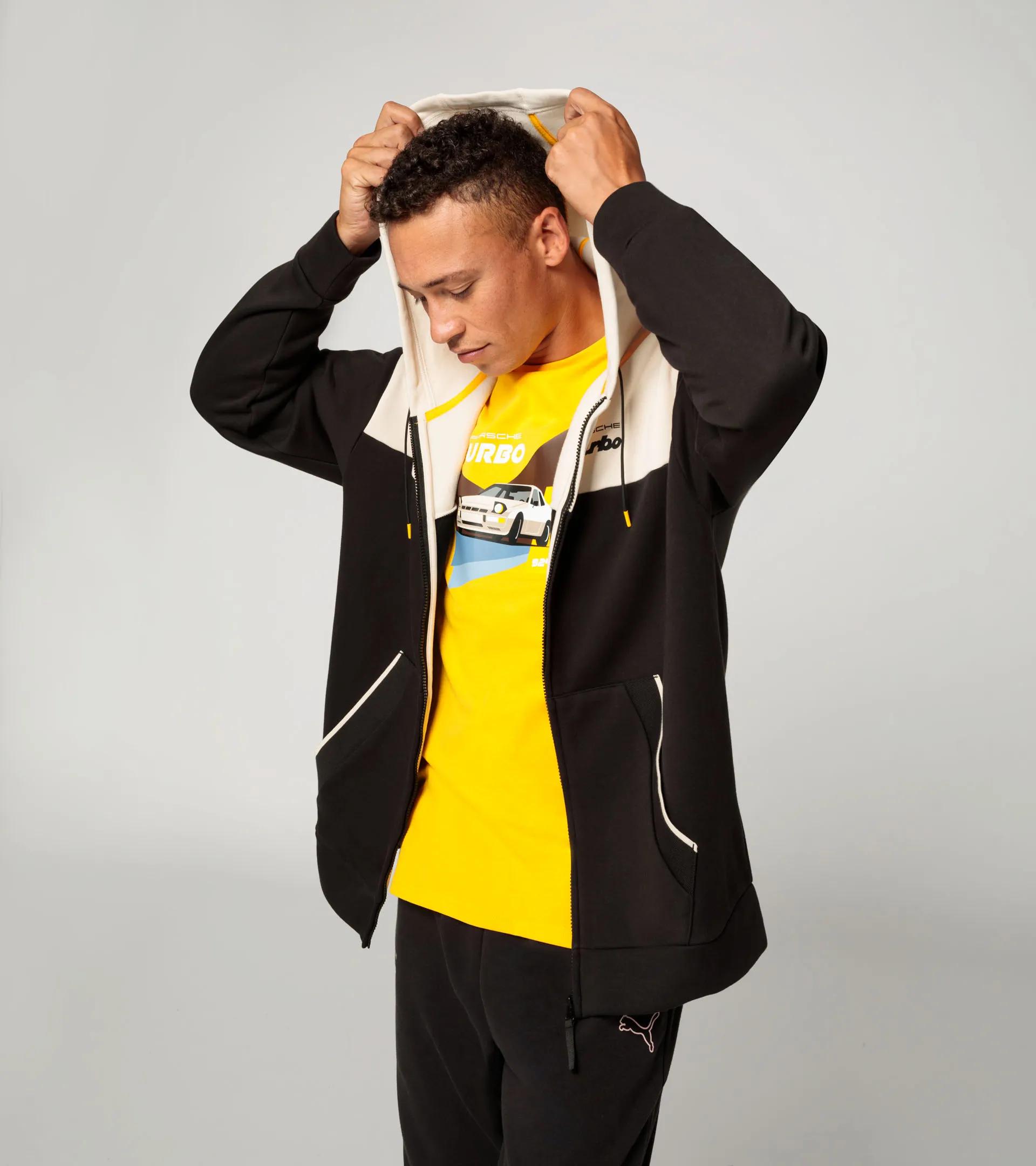 Bequem durch den Alltag: Die Sweatjacke der Porsche Legacy-Kollektion überzeugt optisch mit vielen Details und Color Blocking-Design. Dank des Relaxed Fits und des weichen Sweatstoffs ist sie außerdem besonders komfortabel.
