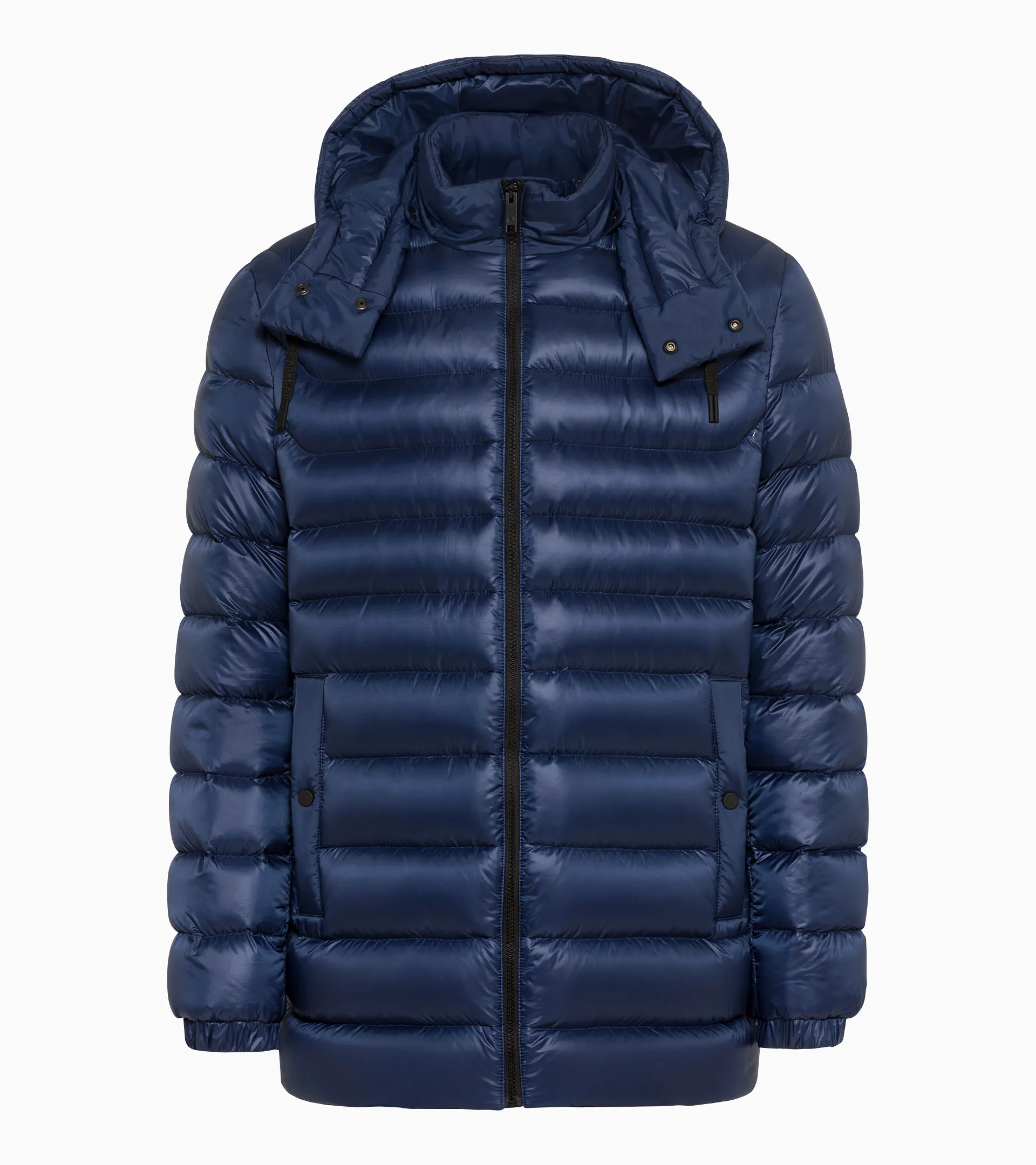 Leicht wie eine Feder – ganz ohne Federn: Der gerade geschnittene Parka mit daunenfreier Füllung ist perfekt geeignet für die Übergangszeit. Die zwei Taschen auf Hüfthöhe sind mit Druckknöpfen schließbar, die Taschen im Inneren mit Reißverschlüssen. Porsche-typisch raffinierte Details sind die abnehmbare Kapuze und die maßgeschneiderten Zipper-Puller des Parkas.