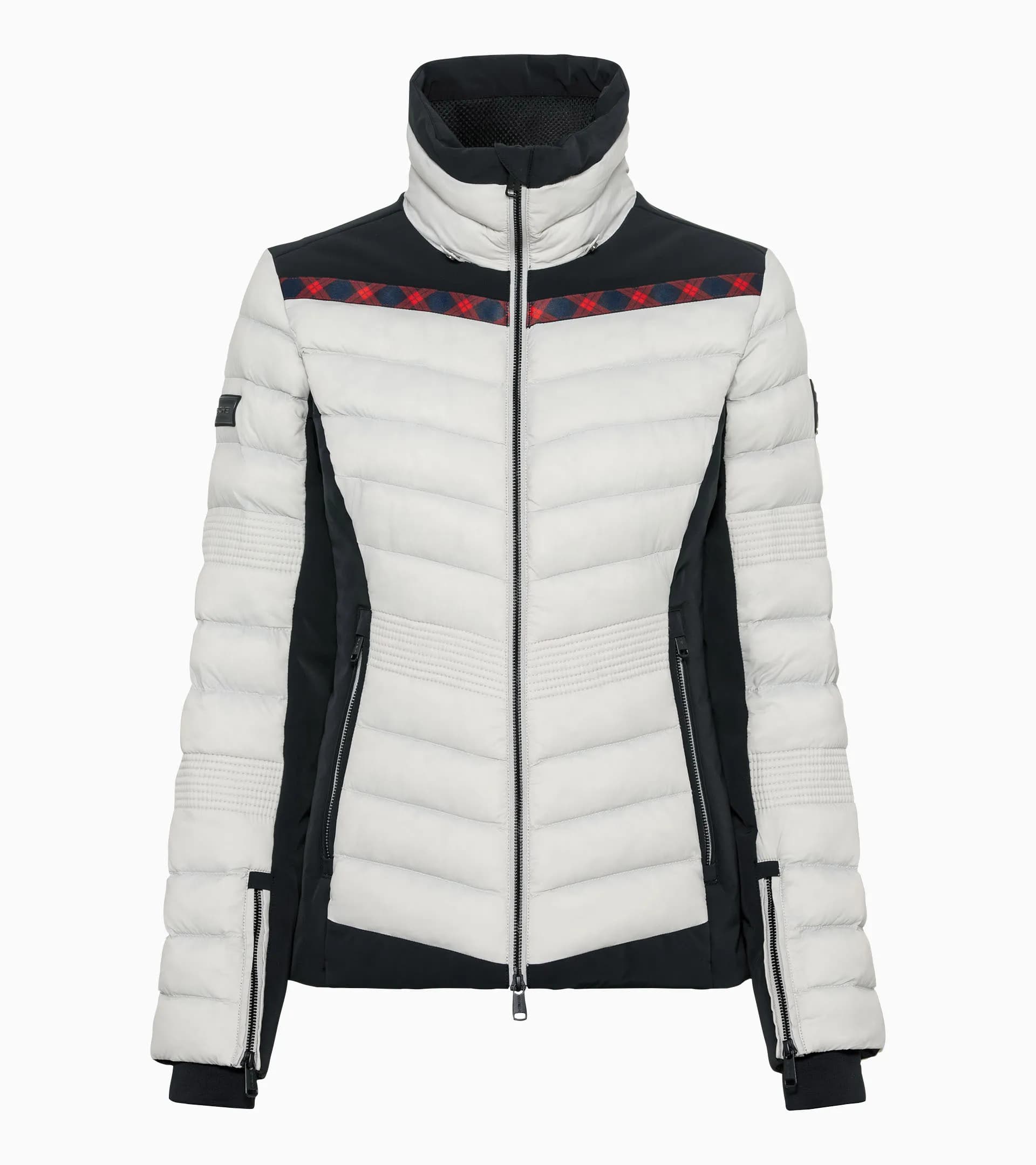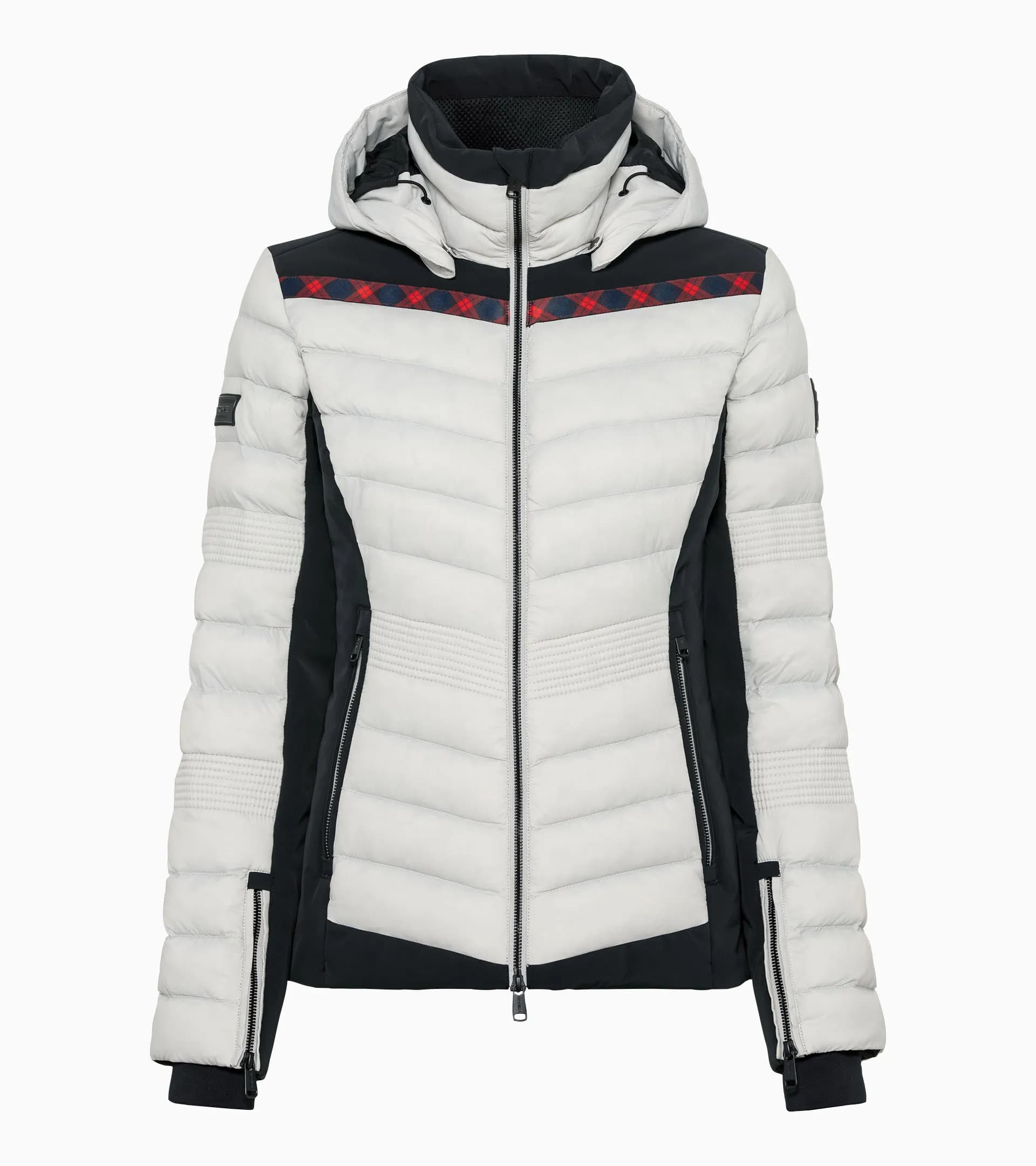 Design Skijacke für Damen aus der exklusiven PORSCHE HEAD Kollektion. Mit abnehmbarer Kapuze und Schneefang. Warm gefüttert.