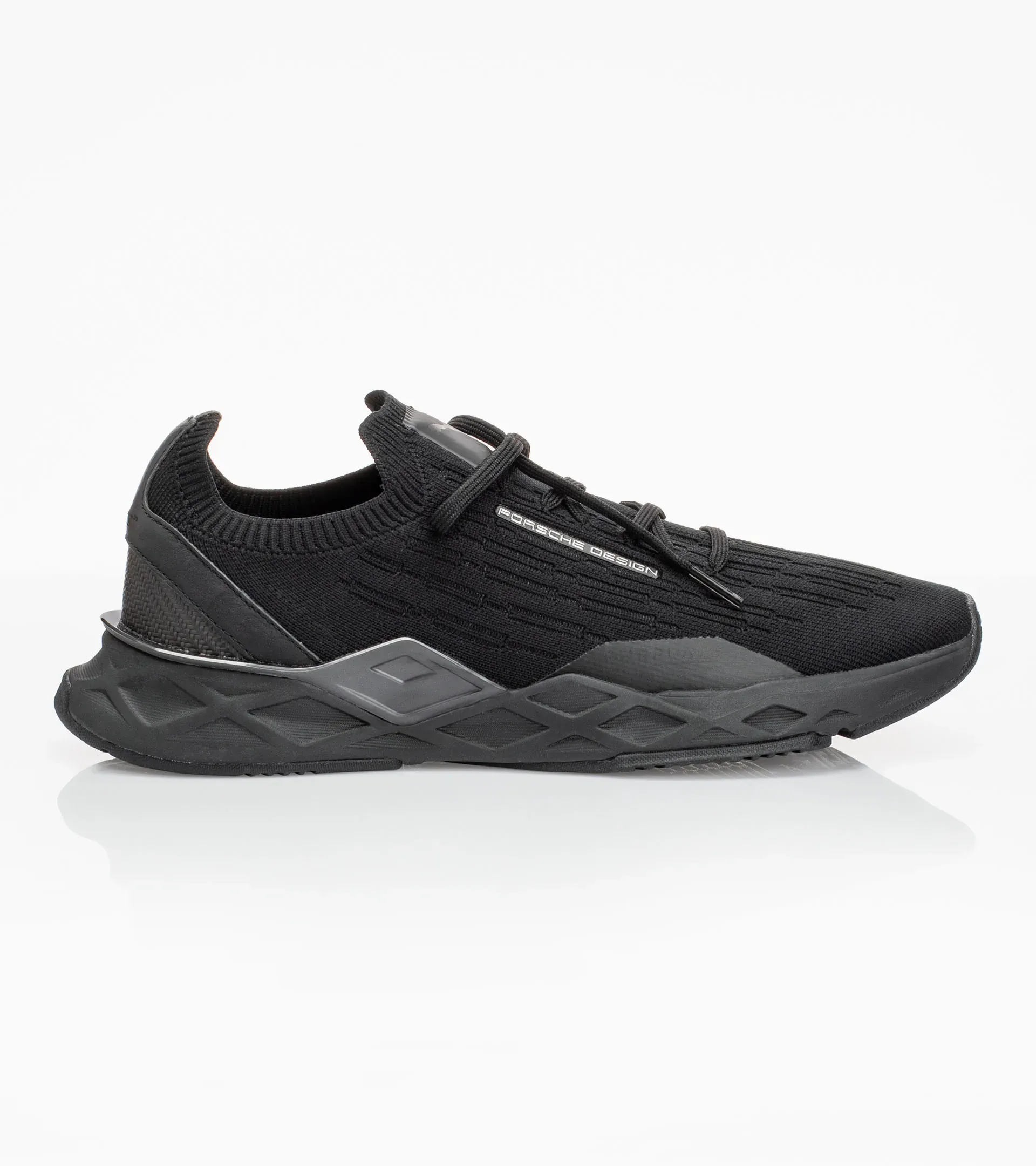 Exklusiver PWRPlate Sportschuh von Porsche Design mit innovativer EvoKNIT®-Technologie. Carbonfaser in Ferse und Tooling für große Stabilität und weiche Dämpfung.
