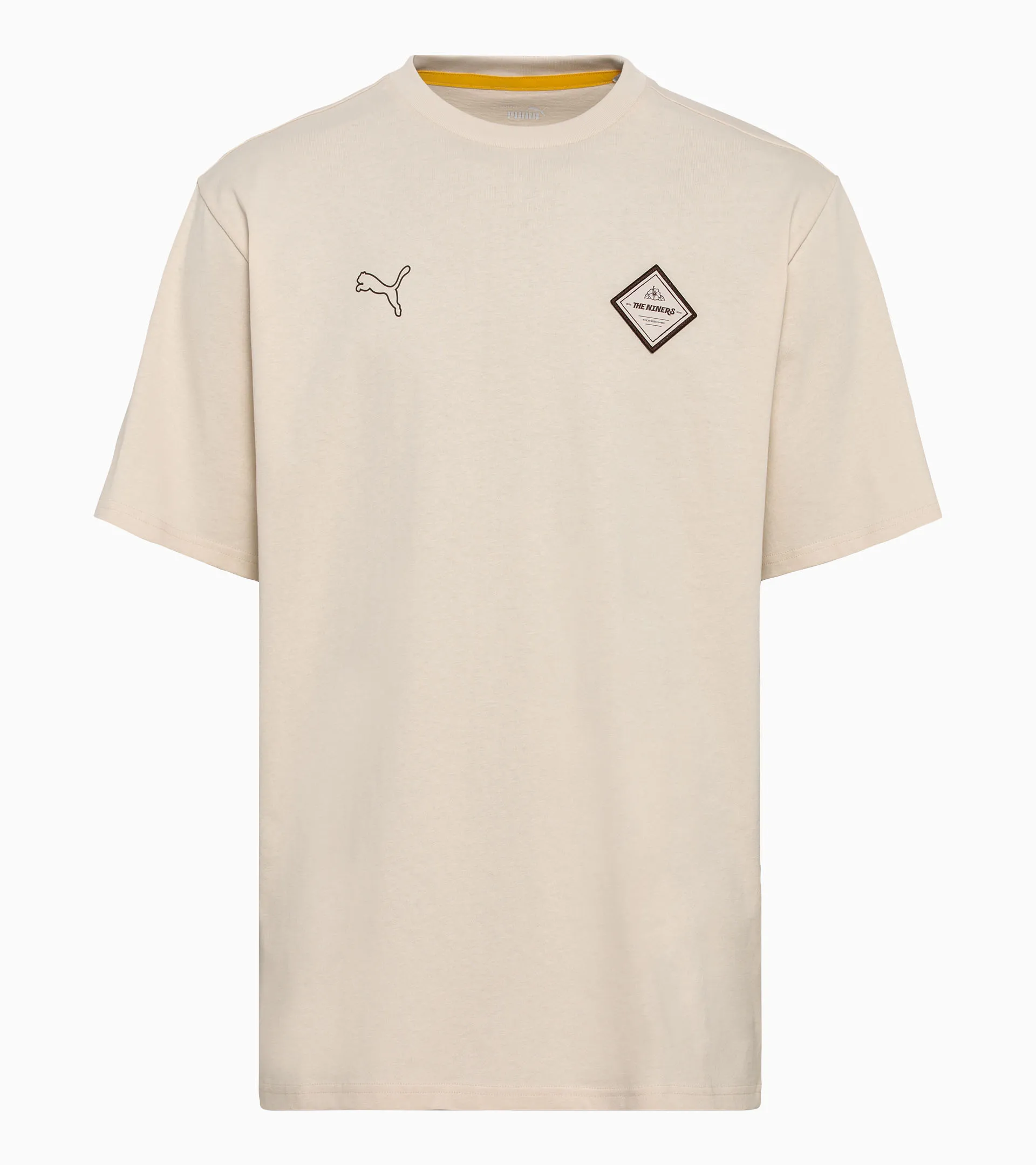 Bequem durch den Alltag: Das vom ikonischen Puma California-Stil der 80er Jahre inspirierte Summer Crew T-Shirt der Porsche Legacy-Kollektion überzeugt optisch mit sommerlichen Badges auf der Frontseite. Dank des Regular Fits ist es außerdem besonders komfortabel.