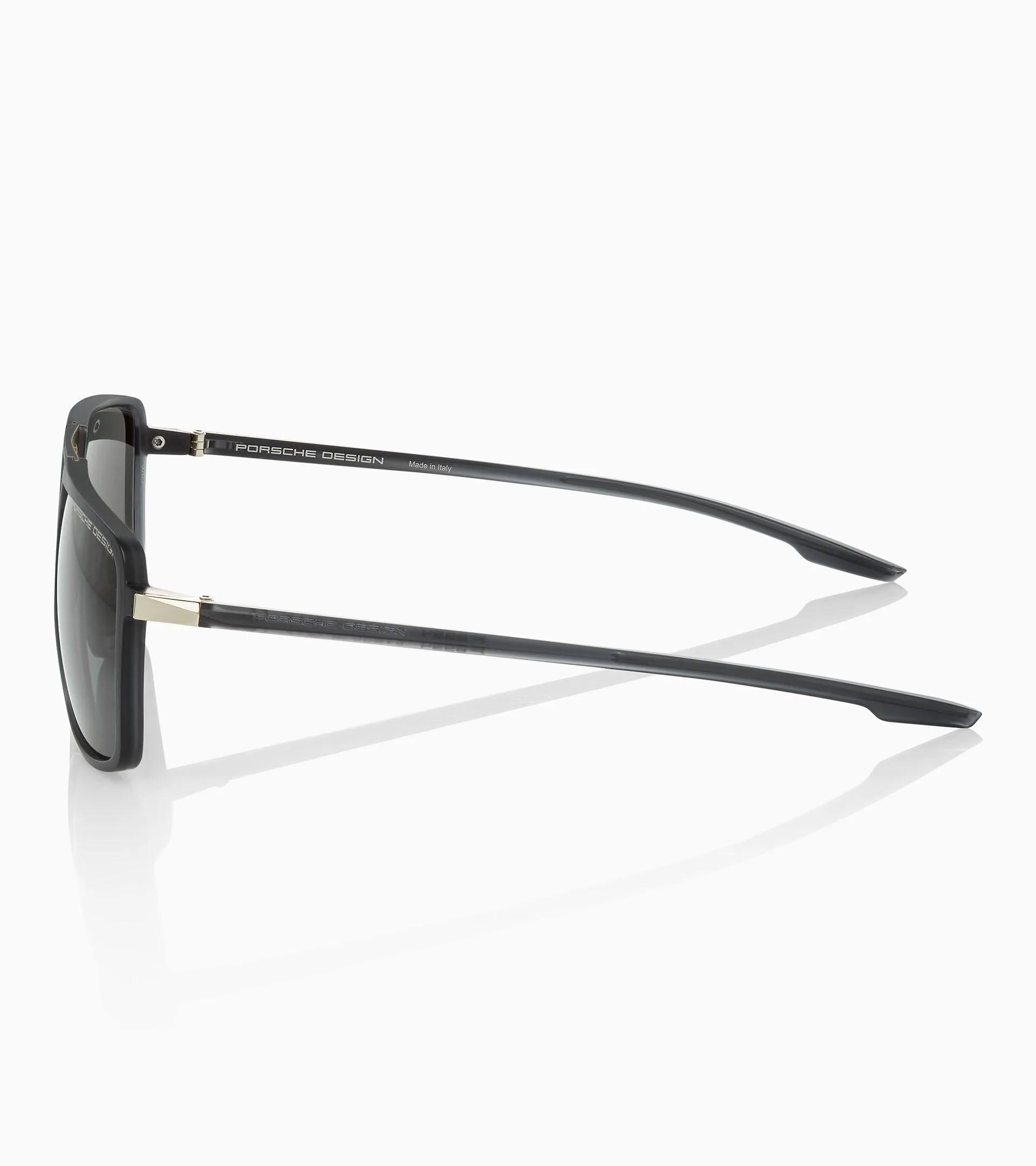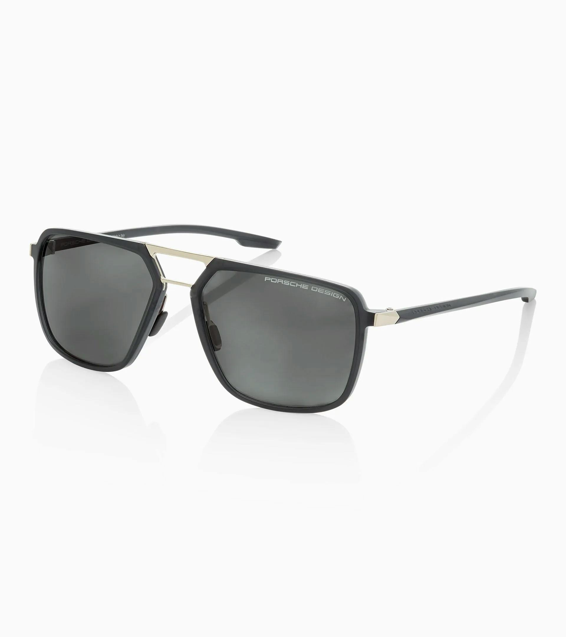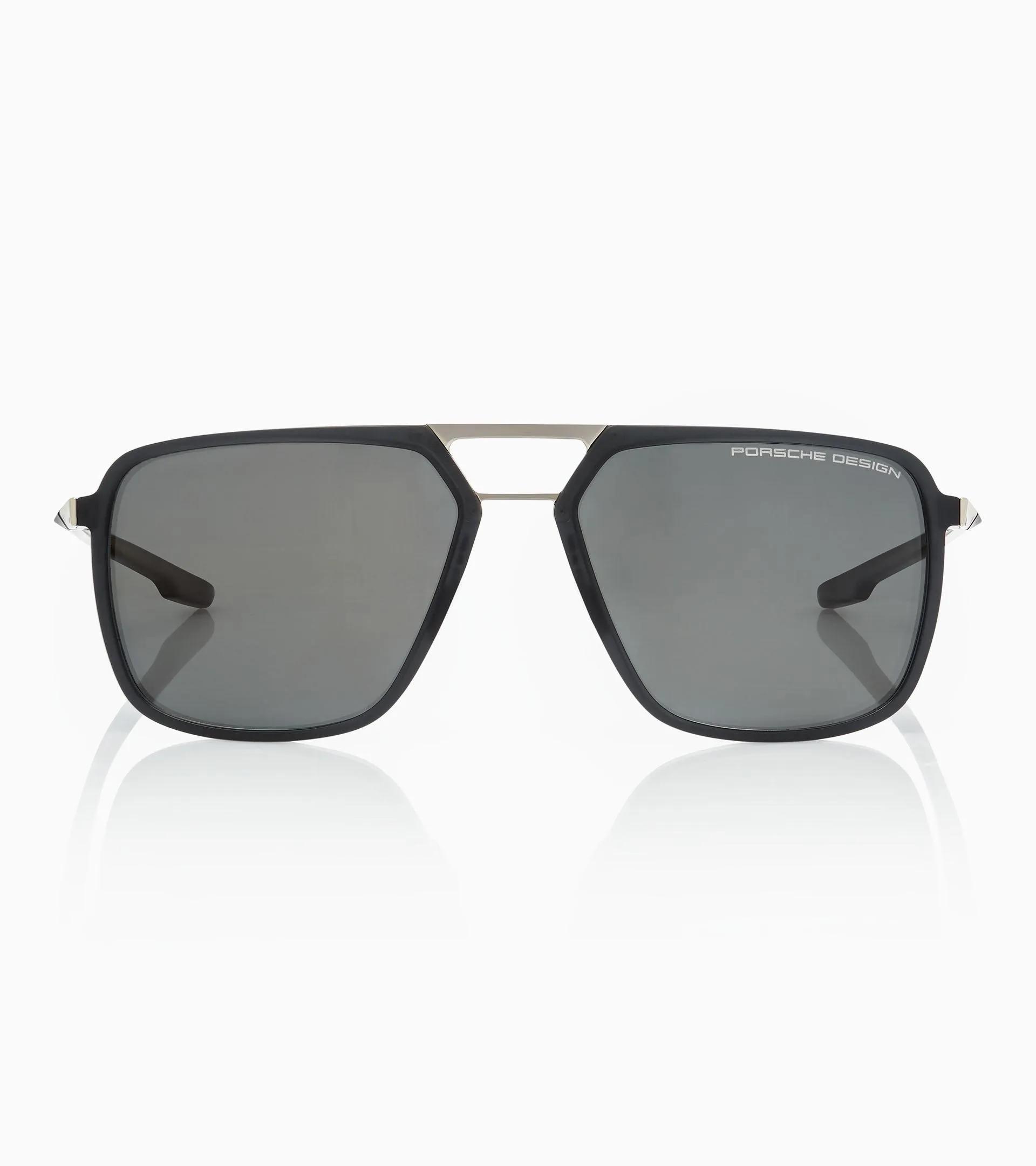 Exklusive Porsche Design Sonnenbrille mit markanter Fassung und 3D-Bügeln. Moderner Materialmix aus RXP® Kunststoff und Edelstahl.