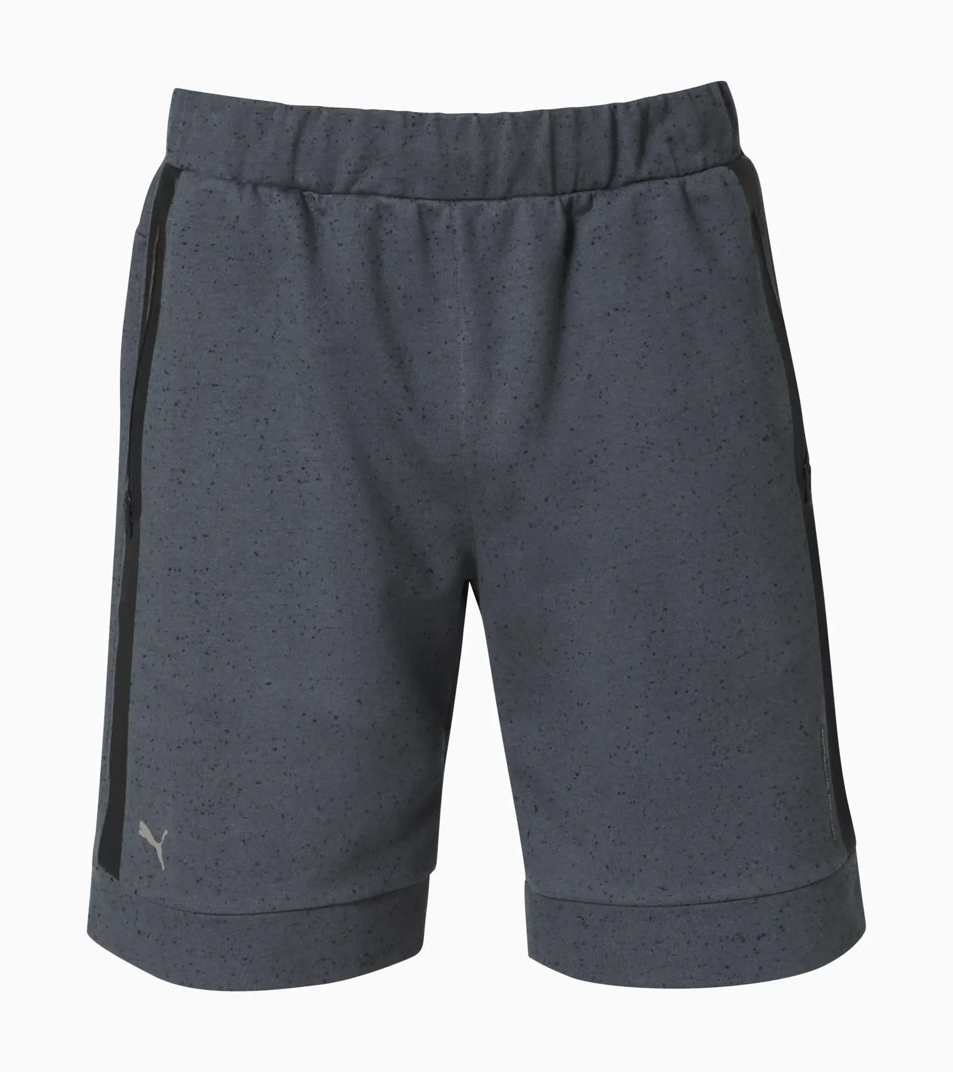Kurz, konstruiert, komfortabel: Die Porsche Design Crew Sweat Shorts aus leichtem French Terry Material tragen sich so lässig wie sie aussehen. Die technisch wirkende Schnittführung mit auffälligen Tapes an den Seiten verleiht dem modernen Sweat-Material ein exklusives Finish. Details wie die beiden Eingrifftaschen mit Reißverschlüssen und die in Signalfarbe gehaltene Kordel der weitenregulierbaren Taille setzen dezente, frische Akzente. Die leichte, ungefütterte Konstruktion macht die Shorts zum angenehmen Begleiter auch an sehr warmen Tagen. Besonders lässig in Kombination mit dem passenden Porsche Design Crew Neck oder dem schlichten Porsche Design Essential Tee. DETAILS: Leichte Sweatshorts. Moderner, konstruierter Schnitt mit Tape-Details. Komfortabler Material-Mix mit Elastan-Anteil. Zwei Eingrifftaschen mit farbig abgesetztem Reißverschluss. Weitenregulierbare Taille mit farbiger Kordel. Reflektierende PUMA Cat und Porsche Design Logo auf den Beinen.