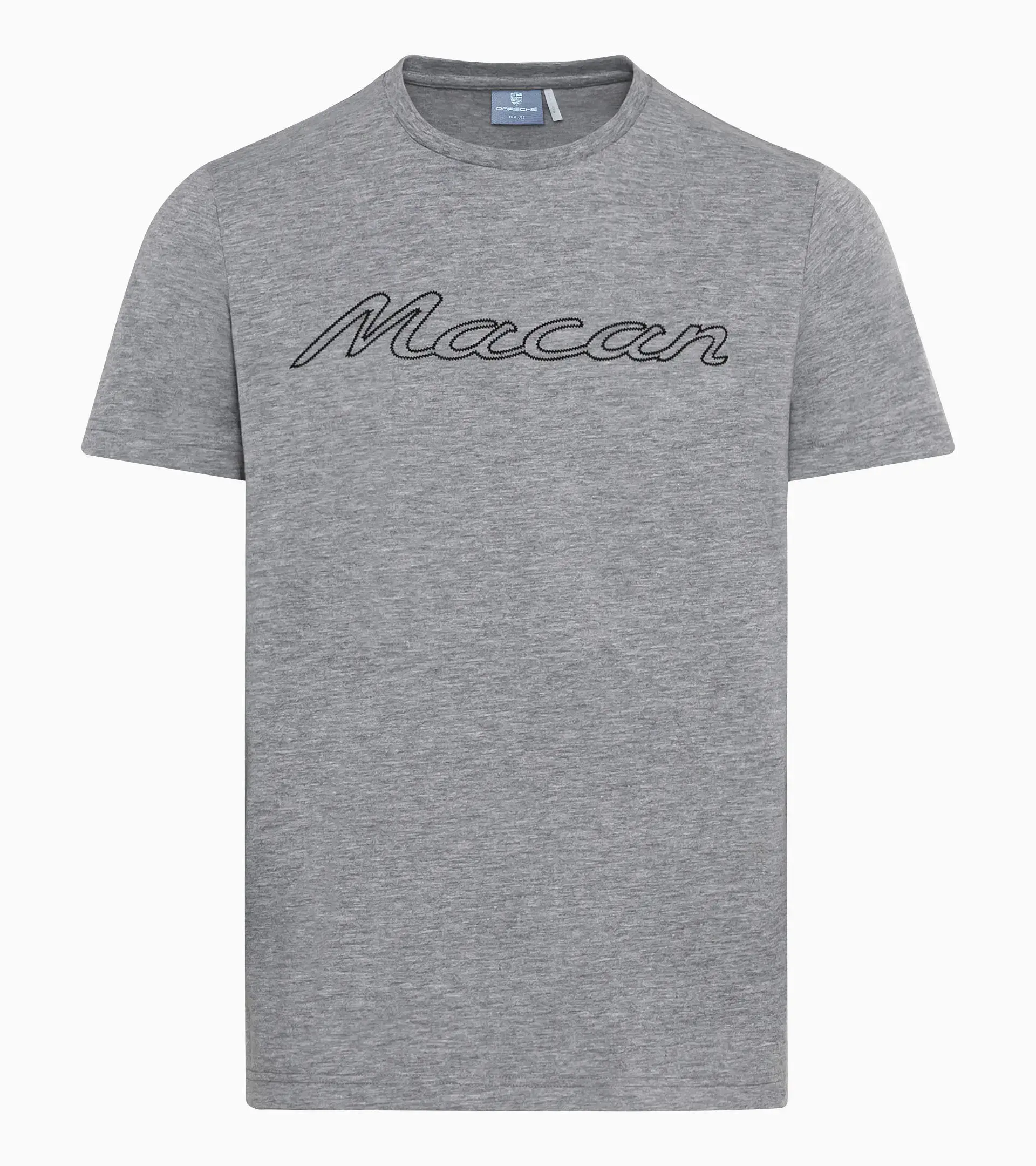 Porsche Unisex Halbarm-T-Shirt, bestickt mit Macan-Schriftzug.