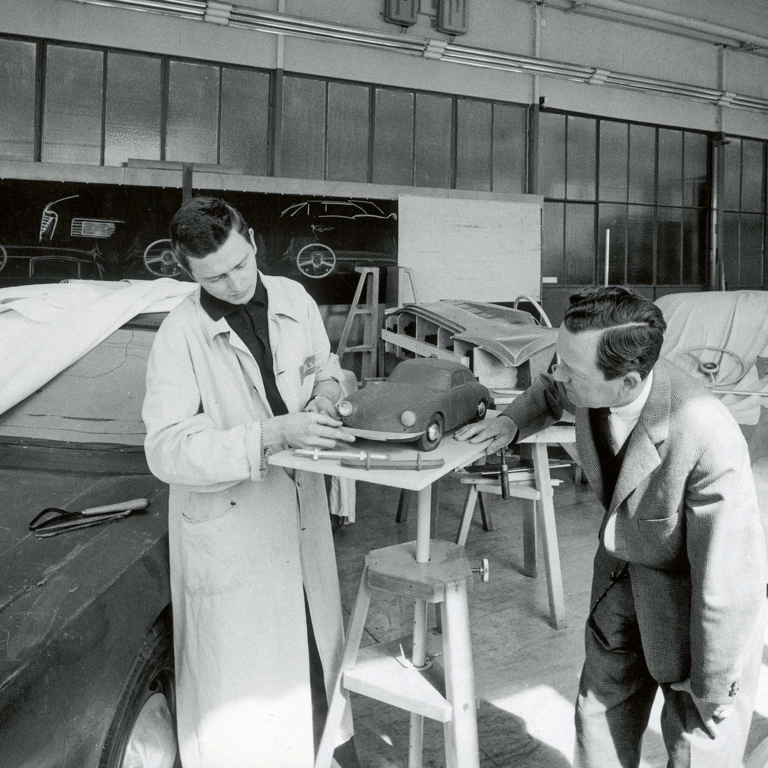 Zurück in der Zeit: Im Jahr 1935 wird Ferdinand Alexander als ältester Sohn von Dorothea und Ferry Porsche geboren. Bereits als Kind verbringt er viel Zeit in den Konstruktionsbüros und Entwicklungsstätten seines Großvaters, Ferdinand Porsche. 1958 steigt er in das Stuttgarter Familienunternehmen ein und schärft dort seinen Sinn für Technik, Materialien und für minimalistisches Design. Der Porsche, den er und sein Team in dieser Zeit entwerfen, wird später als Porsche 911 zur Ikone.