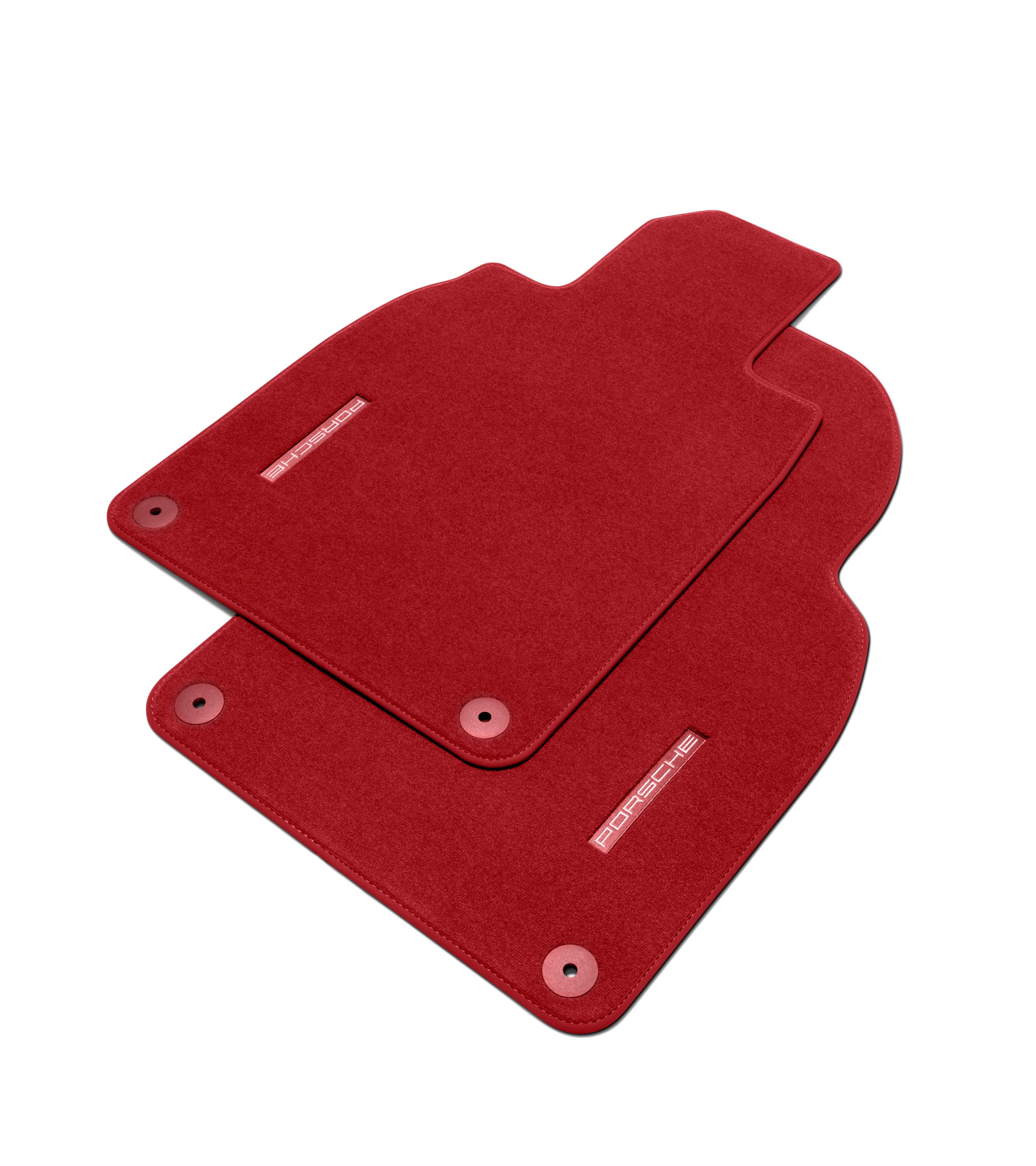 I udvalgte interiørfarver, med nubuck-kant og indsats med broderet "PORSCHE"-skrifttype i sølv.