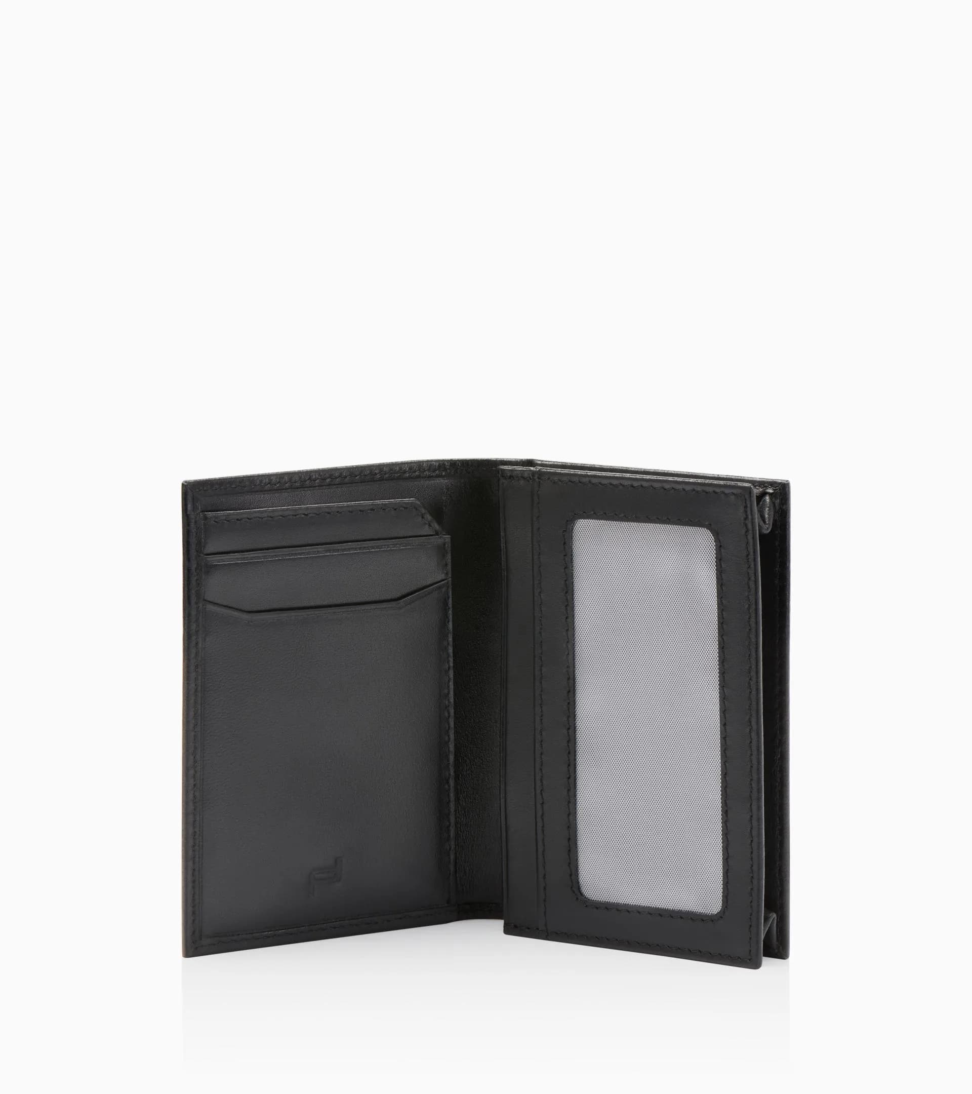 Vertical bifold card holderCrafted from smooth calf leather with Porsche Design metal logo tagOne large pocket behind the ID slot, and one pocket behind the card slotsOne mesh pocket for IDRFID protectionTwo card slots
