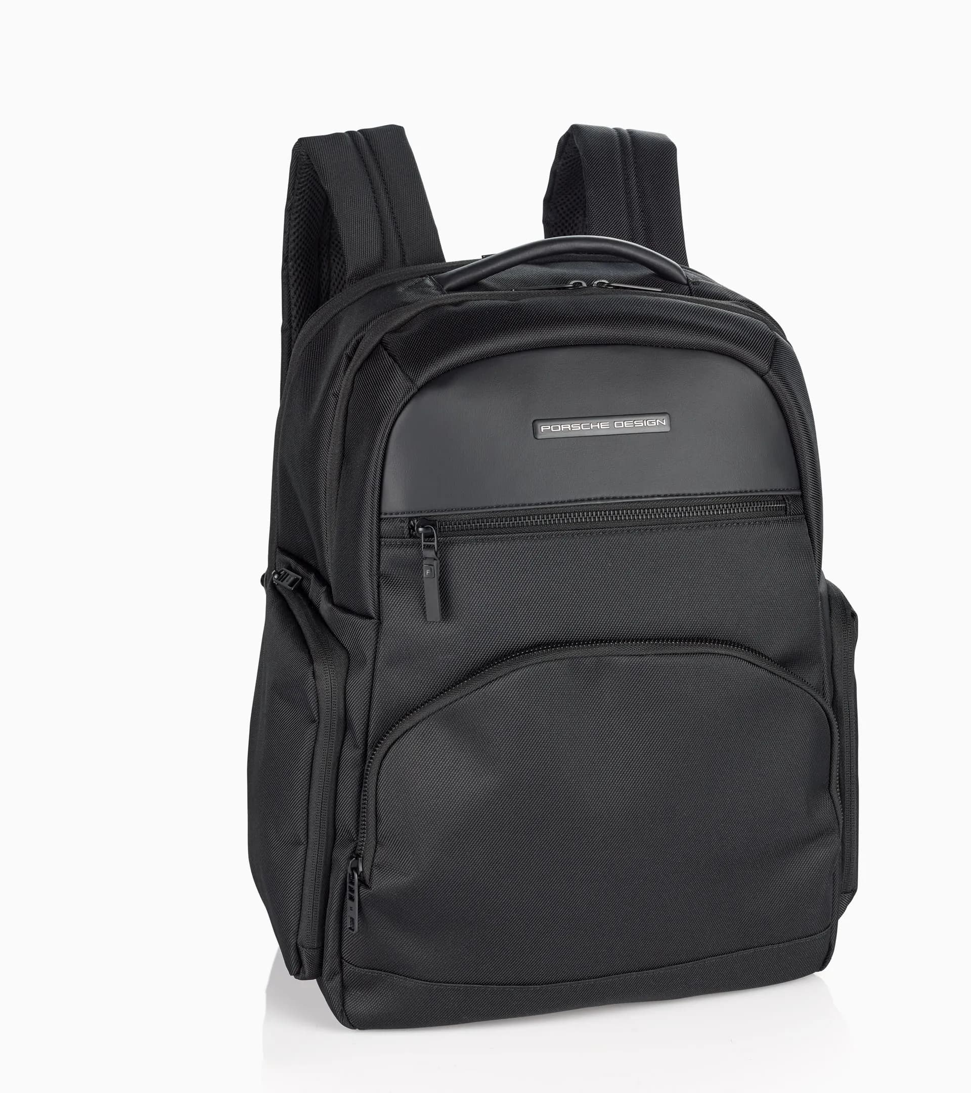 Design meets dynamism: the Voyager Nylon Collection combines performance and style with water-repellent nylon and iconic Porsche Design branding on the front. Practical two-way zips allow easy access to the large backpack's two main compartments: one with a padded laptop compartment, suitable for devices up to 15 inches, and the other ideal for other essentials. The front compartment with business organiser and key holder as well as additional zip side pockets make it easy to organise all your important items. The padded back is comfortable and features a trolley link for effortless travel. Comfort is also provided by the adjustable, padded shoulder straps and the sturdy top carrying handle.