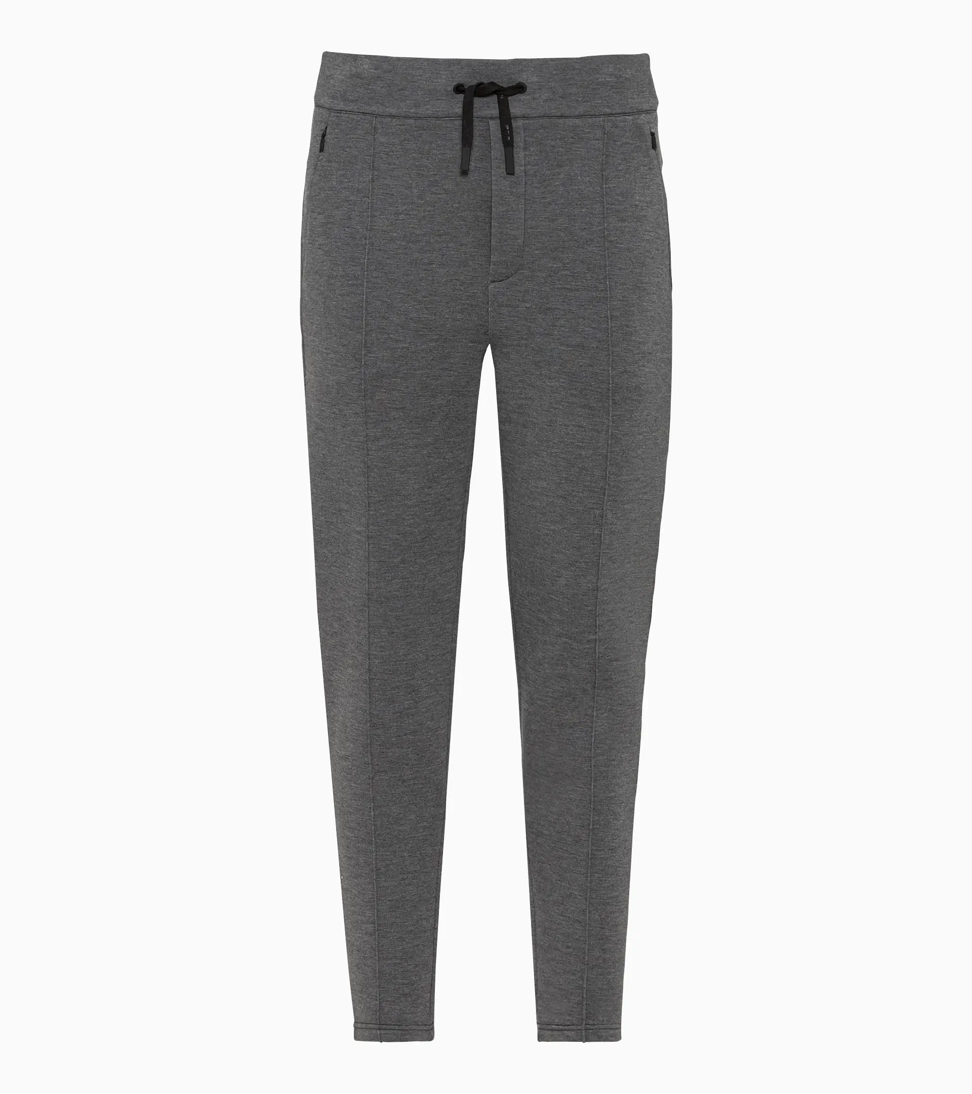 Tendencia "Athflow": la nueva ropa de descanso es lo suficientemente profesional para trabajar en casa, lo suficientemente elástica para el gimnasio y cómoda para la noche. Aunque son informales, estos atuendos para sentirse bien son de alta calidad y elegantes, al igual que los pantalones deportivos Porsche Design 24h. El nombre lo dice todo: estos cómodos pantalones de corte estrecho llevan los pantalones deportivos clásicos a un nuevo nivel gracias al tejido de neopreno de alta calidad y a los detalles formales como los ribetes en las perneras, los sofisticados bolsillos integrados con cremallera y los bolsillos en las costuras de la parte posterior. Su exclusivo diseño queda patente en todas partes: una banda elástica con el logo de Porsche Design en la parte posterior de la cintura, los tiradores de cremallera y los extremos de los cordones están hechos a medida. Con la sudadera deportiva de Porsche Design 24h a juego, conseguimos un traje de lujo perfecto para las horas de relax en casa.