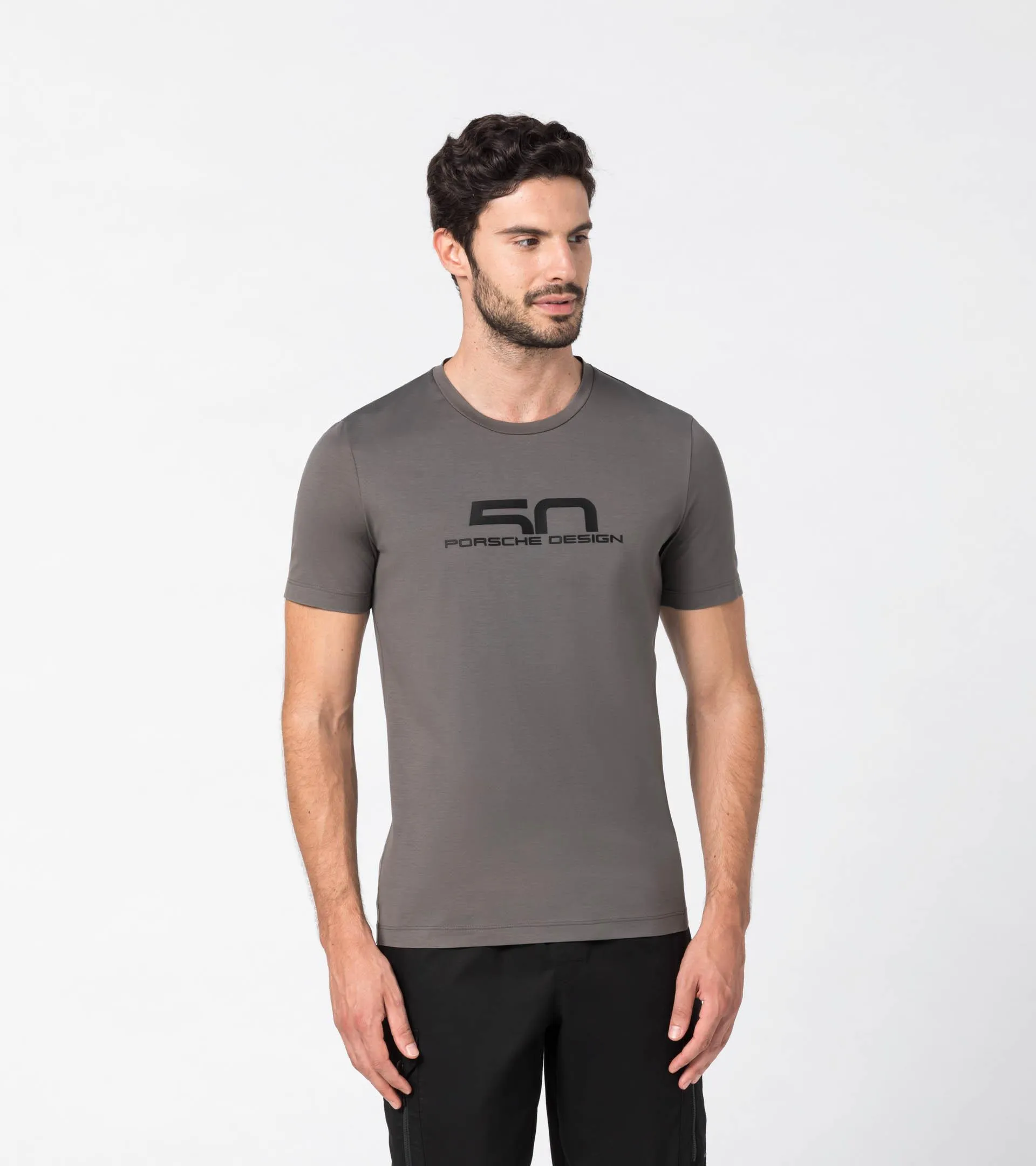 Exclusiva camiseta deportiva 50Y Porsche Design para hombre. Mezcla de algodón y elastano transpirable con estampado del logotipo engomado. La camiseta perfecta para el deporte y el tiempo libre.
