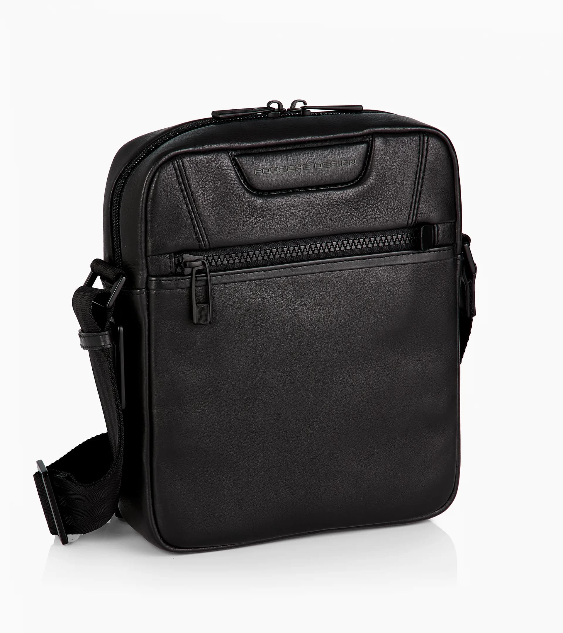 Esta bandolera es sinónimo de funcionalidad clara en una forma particularmente compacta: está hecha de cuero de becerro suave y granulado y desarrollada para negocios, viajes y el uso diario. Detalles inspirados en Porsche, como cremalleras en el estilo de interruptores basculantes y costuras decorativas inspiradas en los asientos del vehículo, subrayan el diseño.