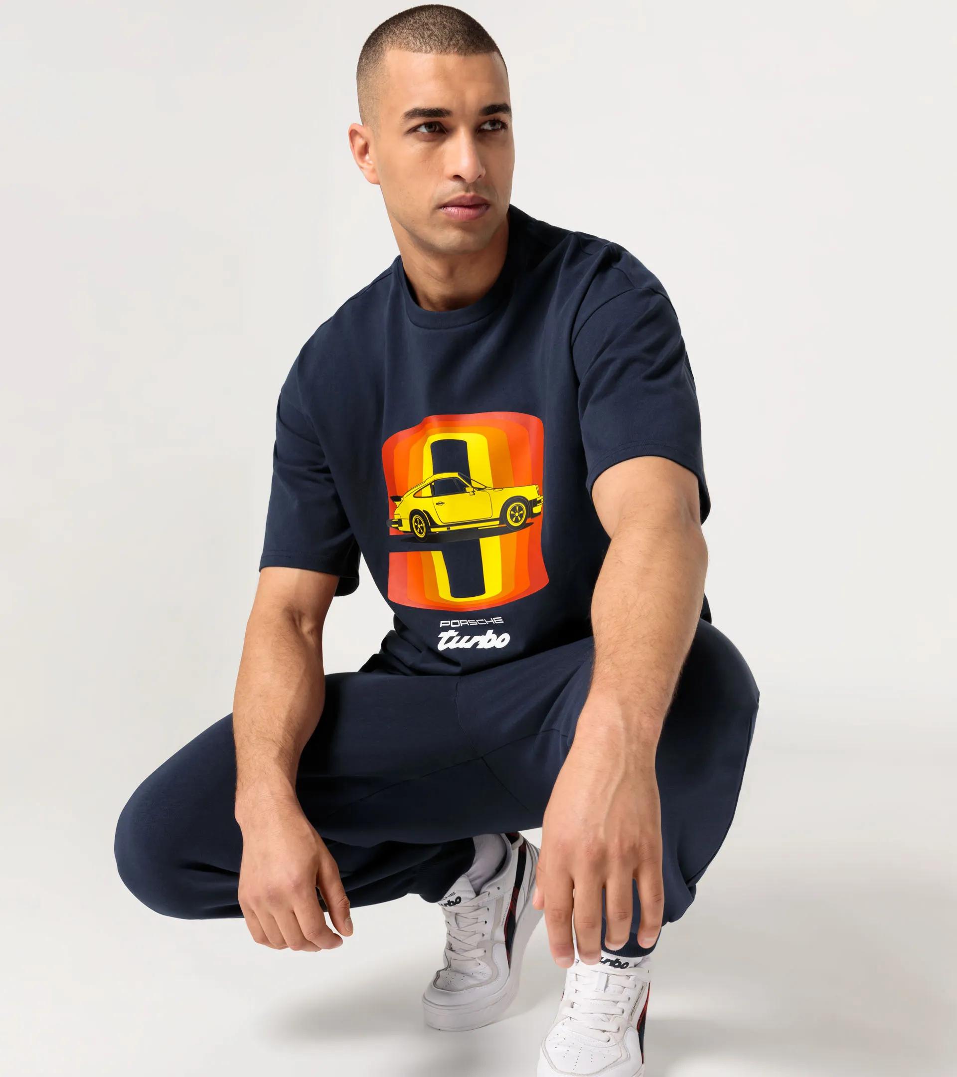 Inspirada en el diseño característico del Porsche 911 Turbo, la colección Porsche Legacy ofrece estilo y prestaciones para todos los días. Esta camiseta con gráfico del 911 llama la atención gracias a la representación detallada del Porsche 911 Turbo de la primera generación.