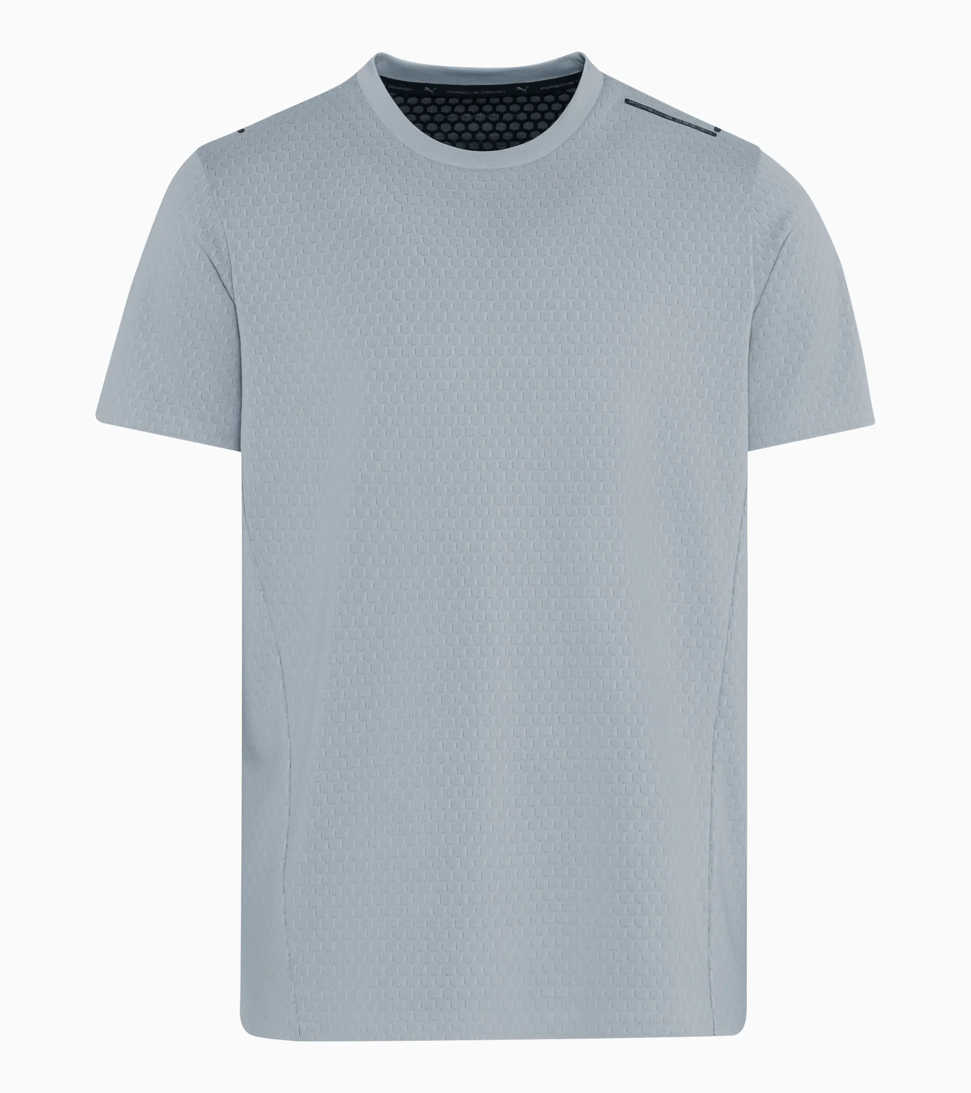 Exclusiva camiseta de Porsche Design fabricada en tejido de punto 3D con hilo de grafeno y patrón hexagonal integrado.