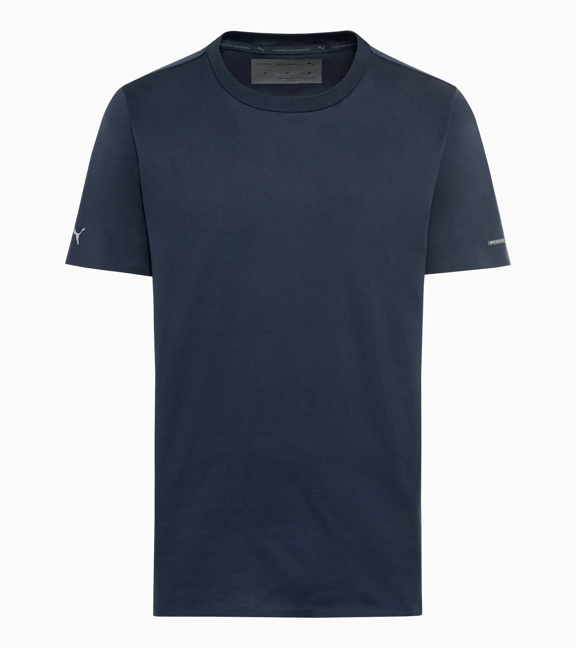 Camiseta deportiva de cuello redondo para hombre, confeccionada con algodón mercerizado. Logotipos reflectantes de PUMA y Porsche Design. La camiseta básica para un look tan estiloso como deportivo.