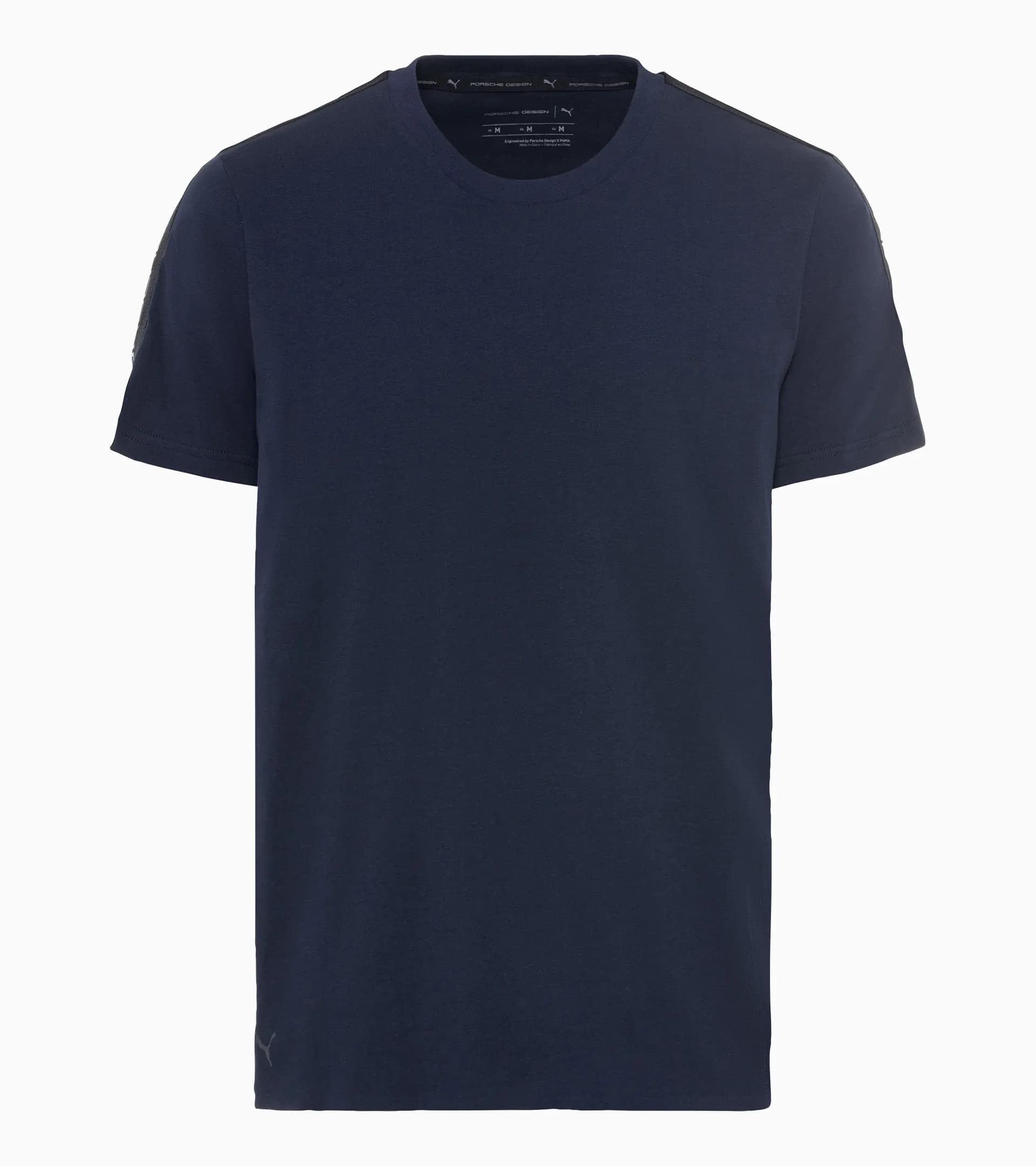 Realza cualquier estilo casual: camiseta informal fabricada con algodón y con cinta Porsche Design en las mangas inspirada en el cinturón de seguridad. La abertura lateral garantiza libertad de movimiento y también es un detalle visual llamativo.