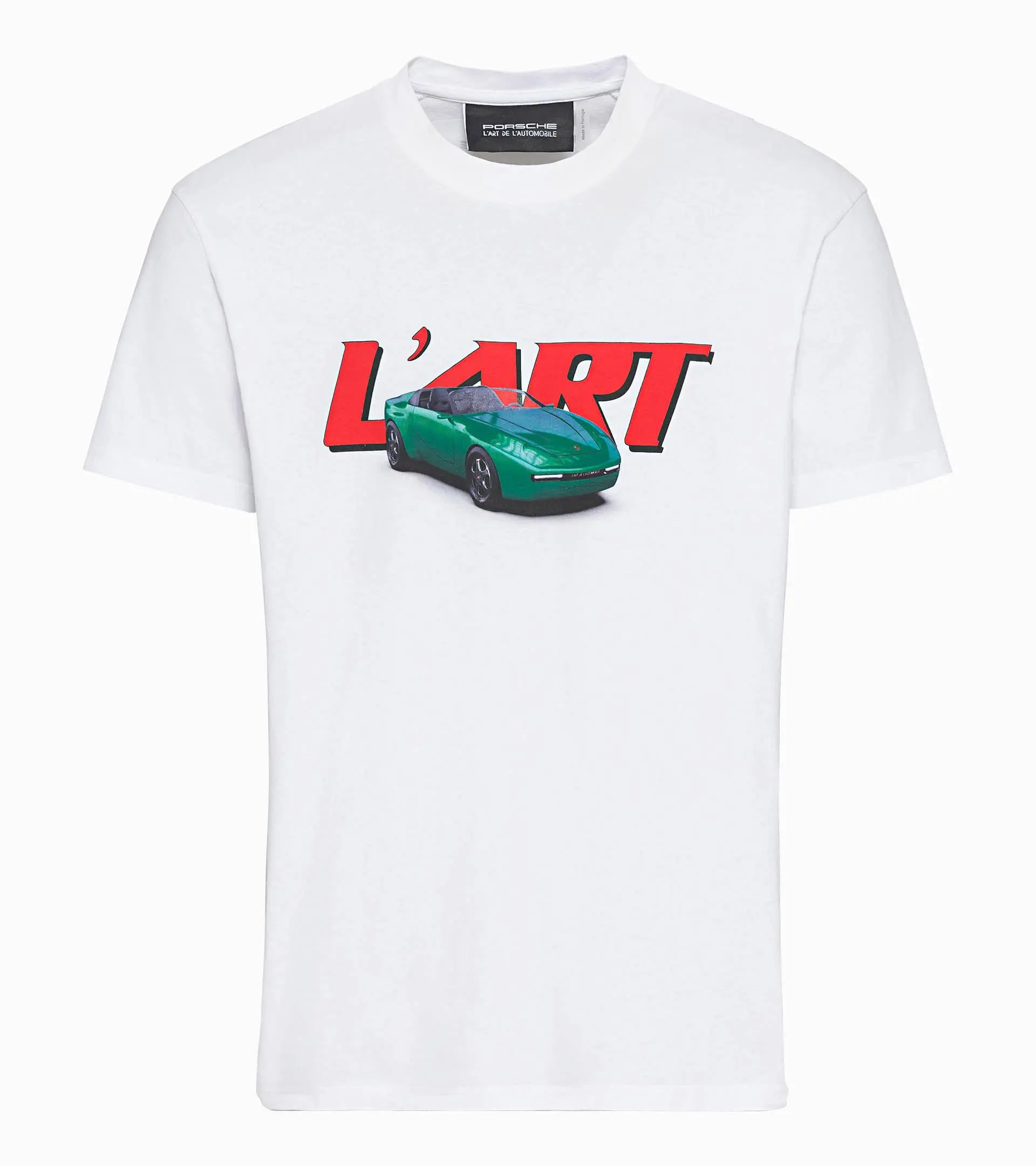 El centro de todas las miradas: la camiseta de la 968 L`ART Collection by L`Art De L`Automobile x Porsche. Gracias al estampado L`ART en varios colores en el pecho, no solo es una camiseta más casual sino también más llamativa para el día a día y el tiempo libre.