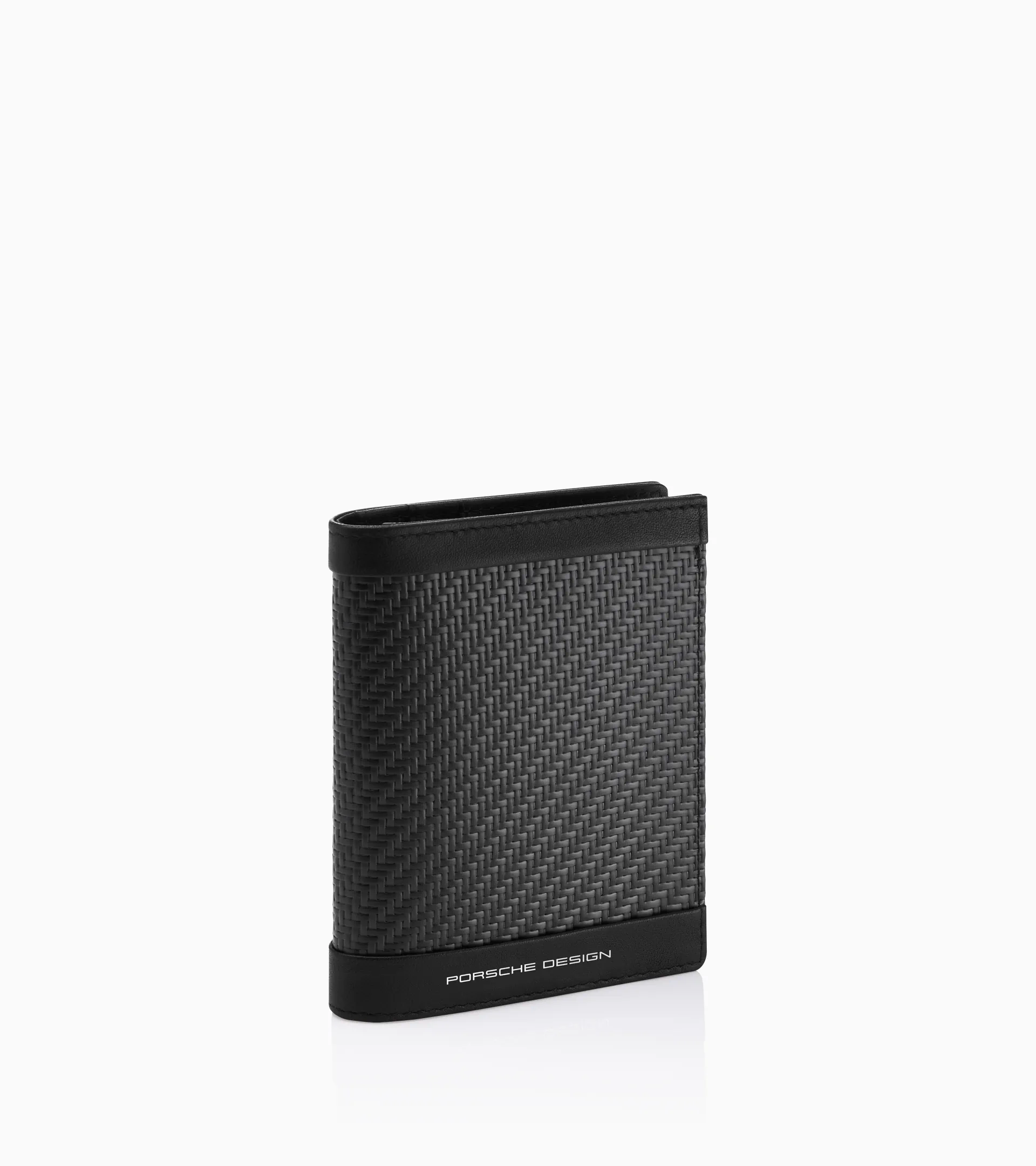 Cartera moderna para hombre en tejido de carbono y cuero de Porsche Design. La billetera tiene capacidad para seis tarjetas de crédito, tarjetas de visita y billetes.