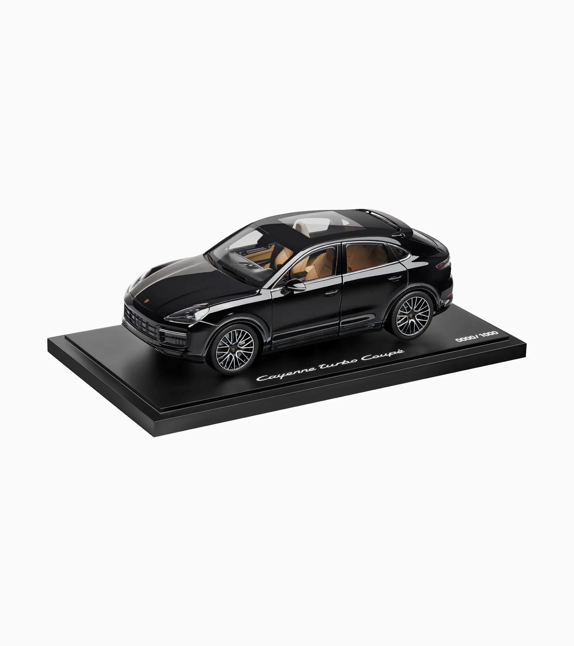 Pieza de coleccionista de alta calidad a todo detalle del Cayenne Coupé Turbo en práctica caja envuelta para regalo.