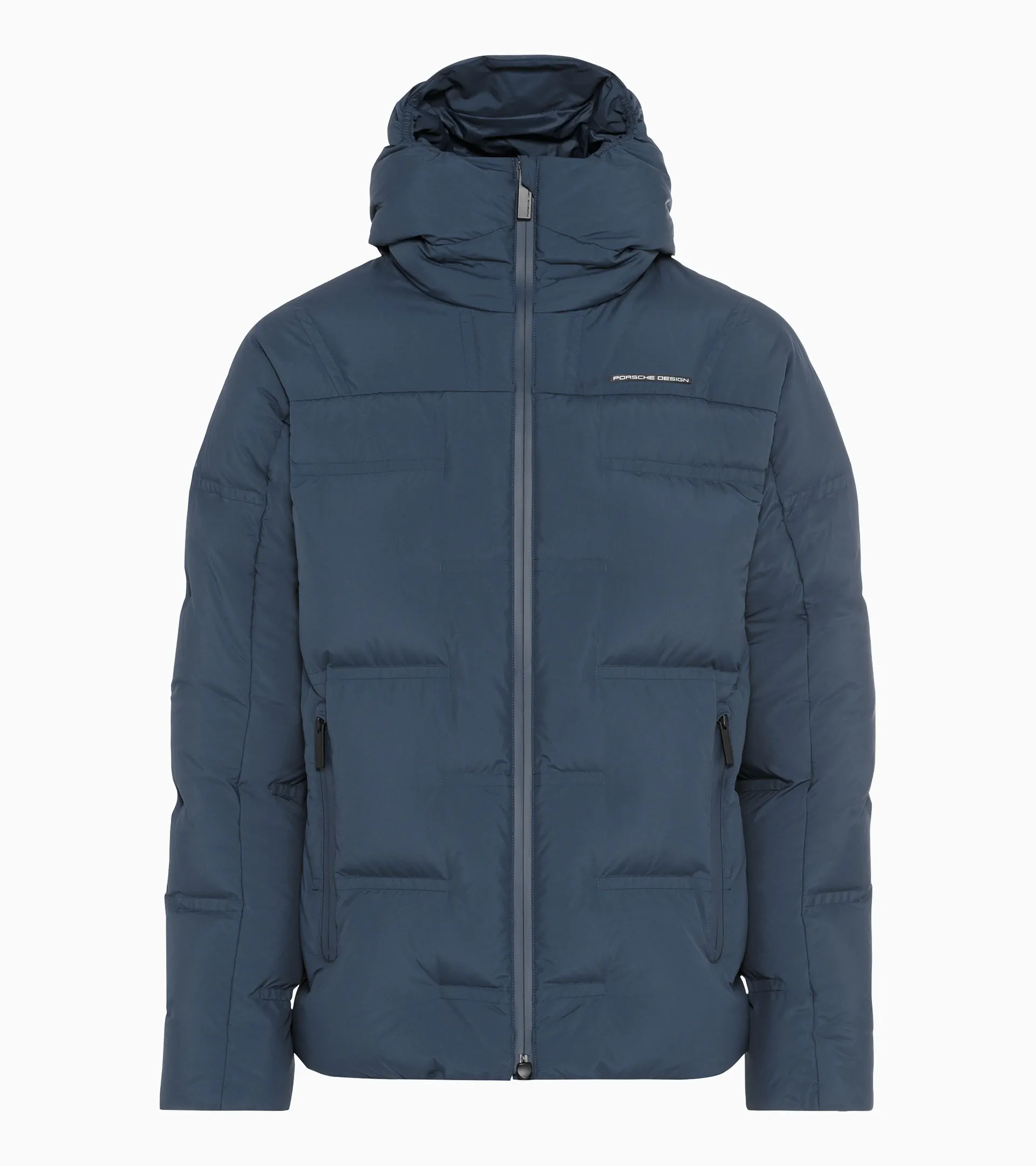 Exclusiva chaqueta acolchada de Porsche Design con innovadora termorregulación de grafeno y capucha extragrande.