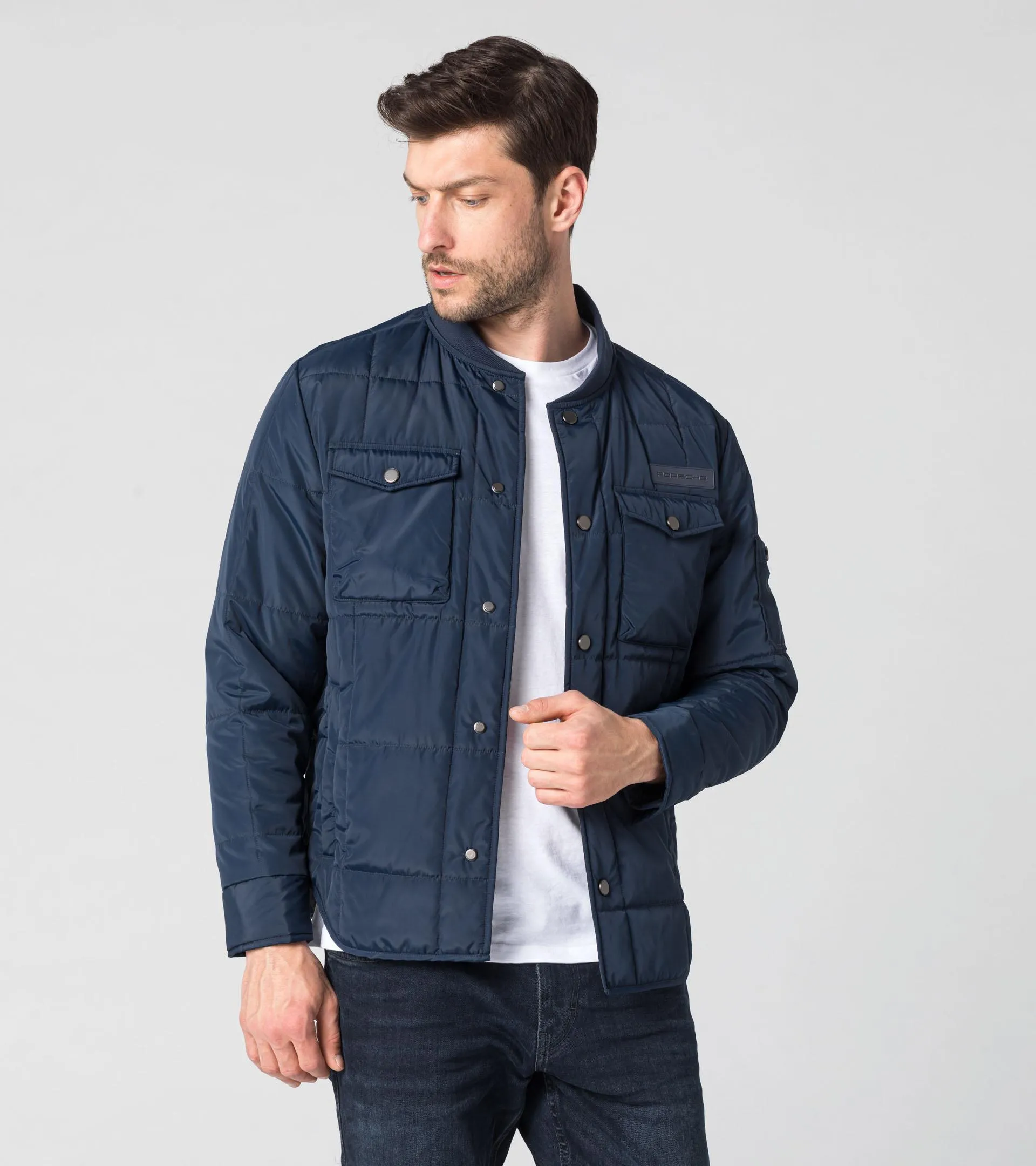 Estilo retro con un toque moderno: Esta chaqueta acolchada para hombre de la Colección Porsche convence por el brillo de su tejido y sus encantadores detalles como un cuello de béisbol, la botonera de broches a presión y los bolsillos en el pecho con solapa abotonada y una bolsa de tela en el bolsillo lateral izquierdo. Por la parte inferior forma un dobladillo ligeramente redondeado. Además se incluyen 4 insignias que se pueden coser, lo que convierte cada chaqueta en una pieza única.