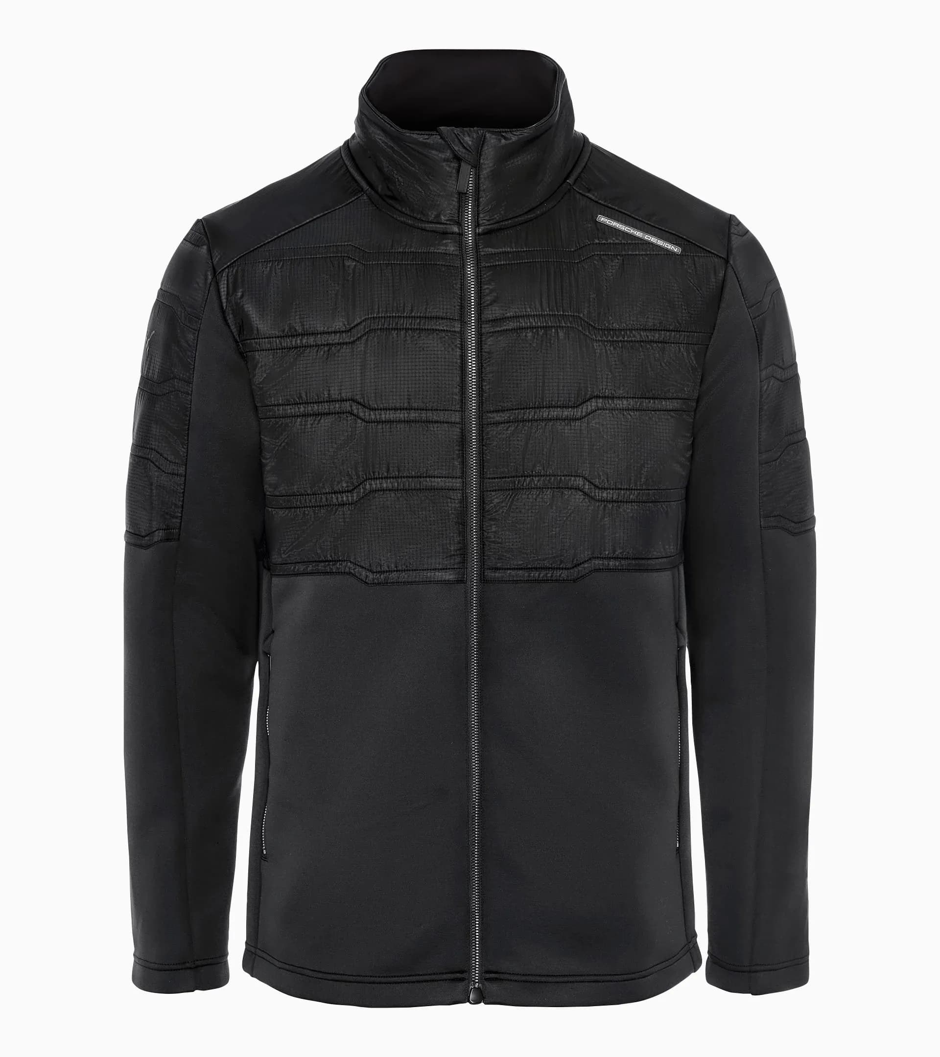 Elegante chaqueta híbrida de Porsche Design con la innovadora tecnología CLOUDSPUN y cuello alto.