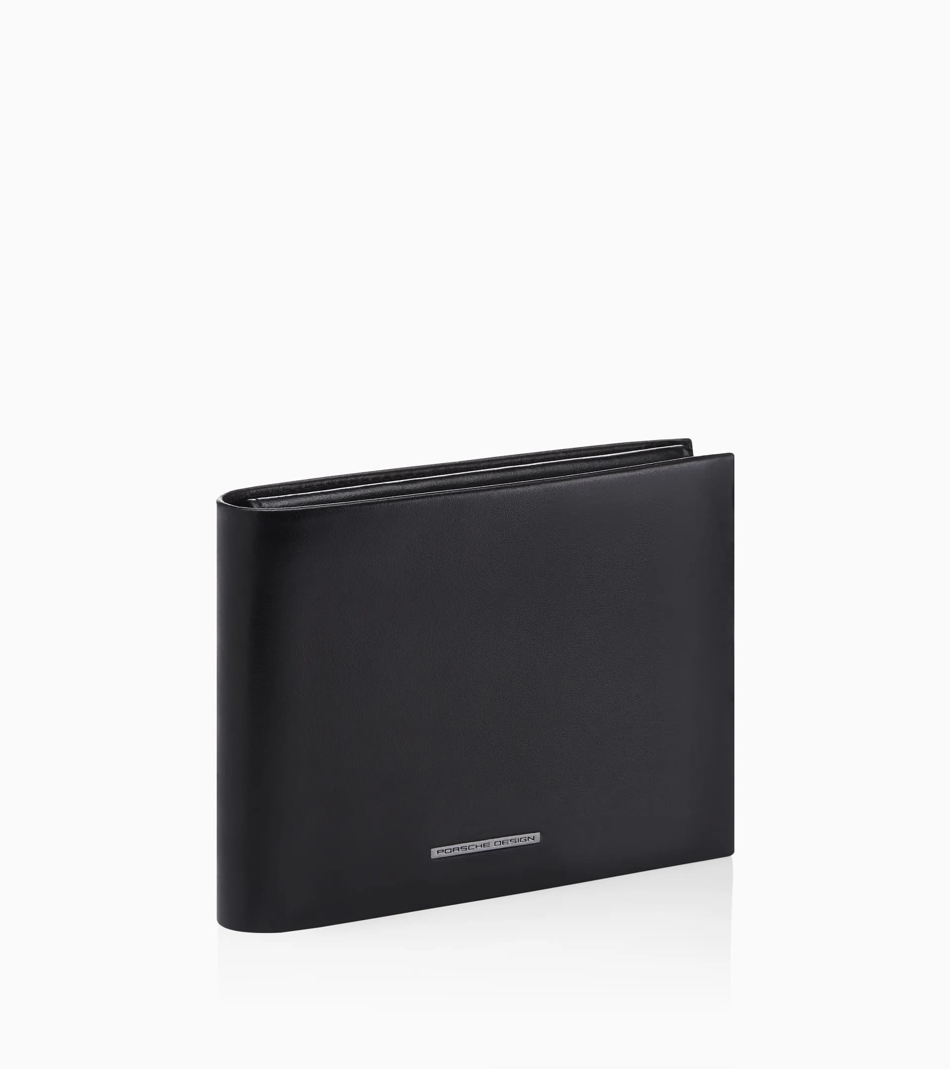 Clásica cartera para hombre con compartimento para monedasPiel de vacuno liso con placa metálica y el logotipo de Porsche DesignDiez ranuras para tarjetas de créditoUna zona con malla para documentos de identidad y tres grandes compartimentosDos compartimentos para billetesProtección RFID