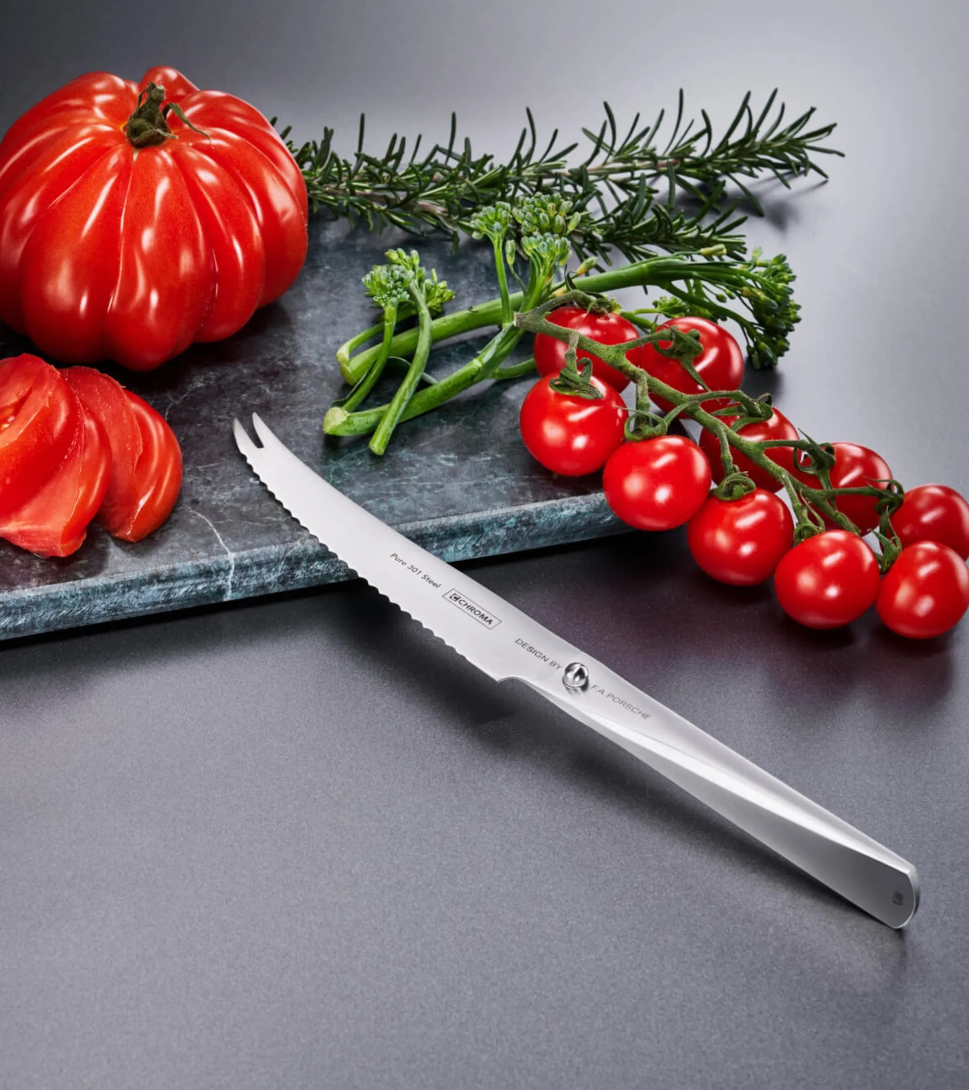 Este cuchillo pequeño para frutas y verduras de Porsche Design es más que una simple herramienta: es un testimonio de excelente diseño y artesanía profesional en su cocina. Especialmente desarrollado tanto para mechar carne como para pelar y cortar frutas y verduras, el cuchillo convence por su excelente calidad de corte y su extraordinaria ergonomía.El mango y la hoja se fusionan a la perfección, garantizando un manejo armonioso y fluido. Una llamativa perla de acero inoxidable destaca sutilmente la transición entre la hoja y el mango y, al mismo tiempo, sirve como soporte ideal para el pulgar y el índice. El mango de diseño ergonómico se inspira claramente en los métodos de trabajo de los chefs profesionales, que utilizan sus cuchillos en ángulos de corte variables. Los biseles especiales del mango garantizan un manejo cómodo y flexible sin necesidad de una posición de sujeción fija.Fabricado con acero japonés Pure 301 de alta calidad, la hoja garantiza durabilidad y un filo excepcional que satisface incluso las más altas exigencias. Diseño de Studio F. A. Porsche.