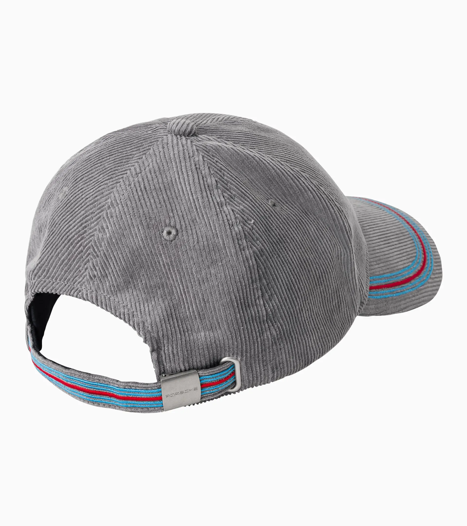 Elegante gorra de pana de 6 paneles MARTINI RACING® con detalles de la icónica colección y características deportivas.