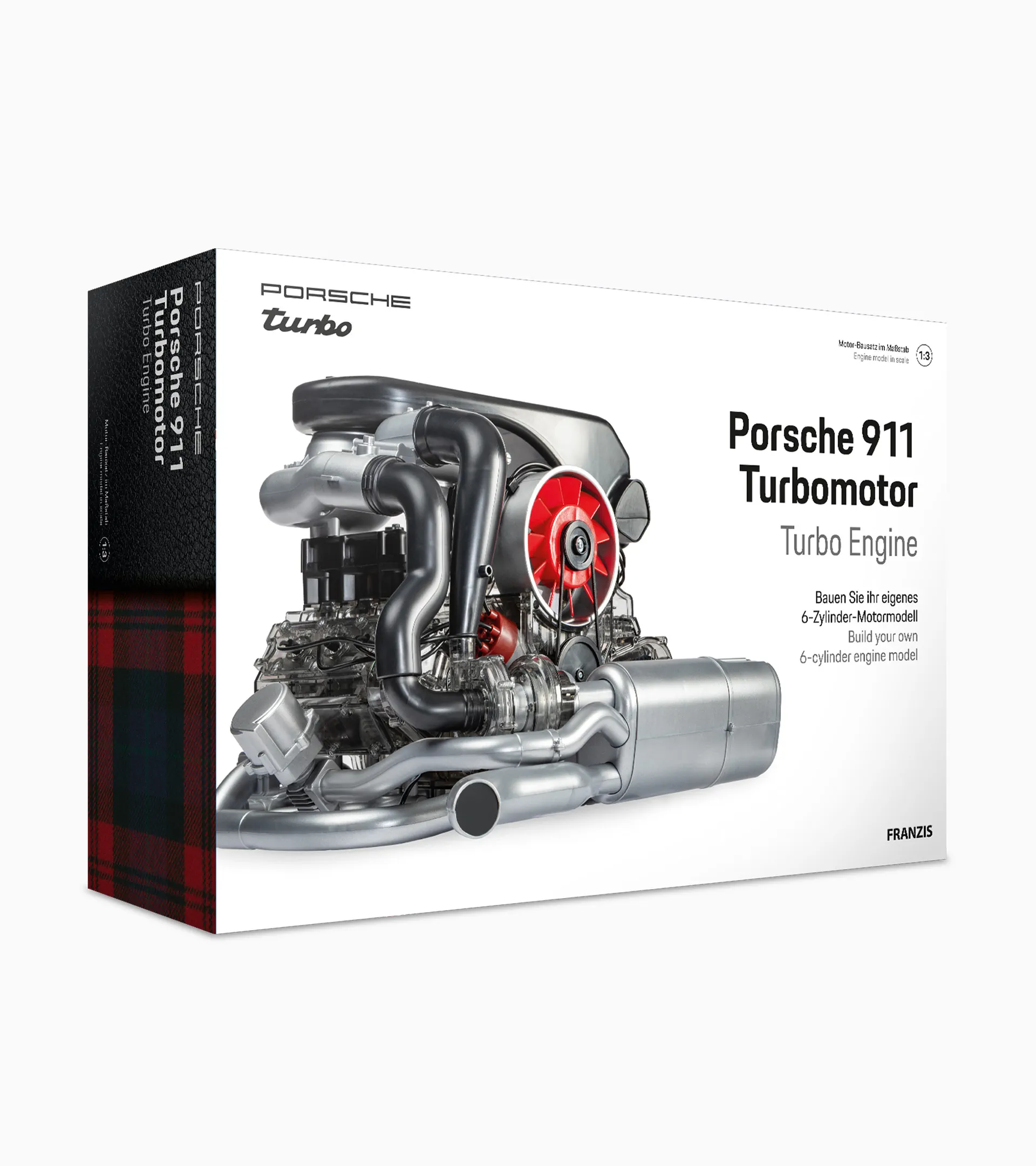El Porsche 911 Turbo fue un pionero tecnológico en el campo de los deportivos de altas prestaciones. El enorme alerón trasero dejaba claro, incluso con el vehículo parado, la potencia elemental que se esconde bajo la clásica carrocería del 911. Para el modelo del año 1975, se instaló la entonces aún nueva tecnología turbo en el bóxer de seis cilindros de Zuffenhausen, lo que garantizó unas prestaciones de conducción explosivas. Construya su propio motor Porsche 911 Turbo como modelo funcional transparente a escala 1:3. Los componentes individuales pueden simplemente enchufarse y atornillarse, sin necesidad de pegamento.