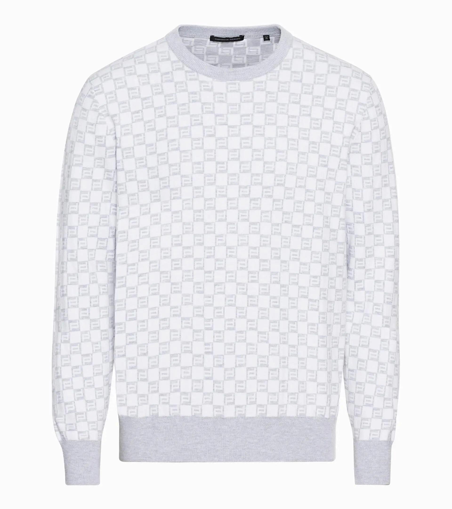 Jersey de marca para hombre en punto jacquard de algodón de Porsche Design. El exclusivo jersey a cuadros de diseño con cuello redondo es deportivo y elegante a un tiempo.