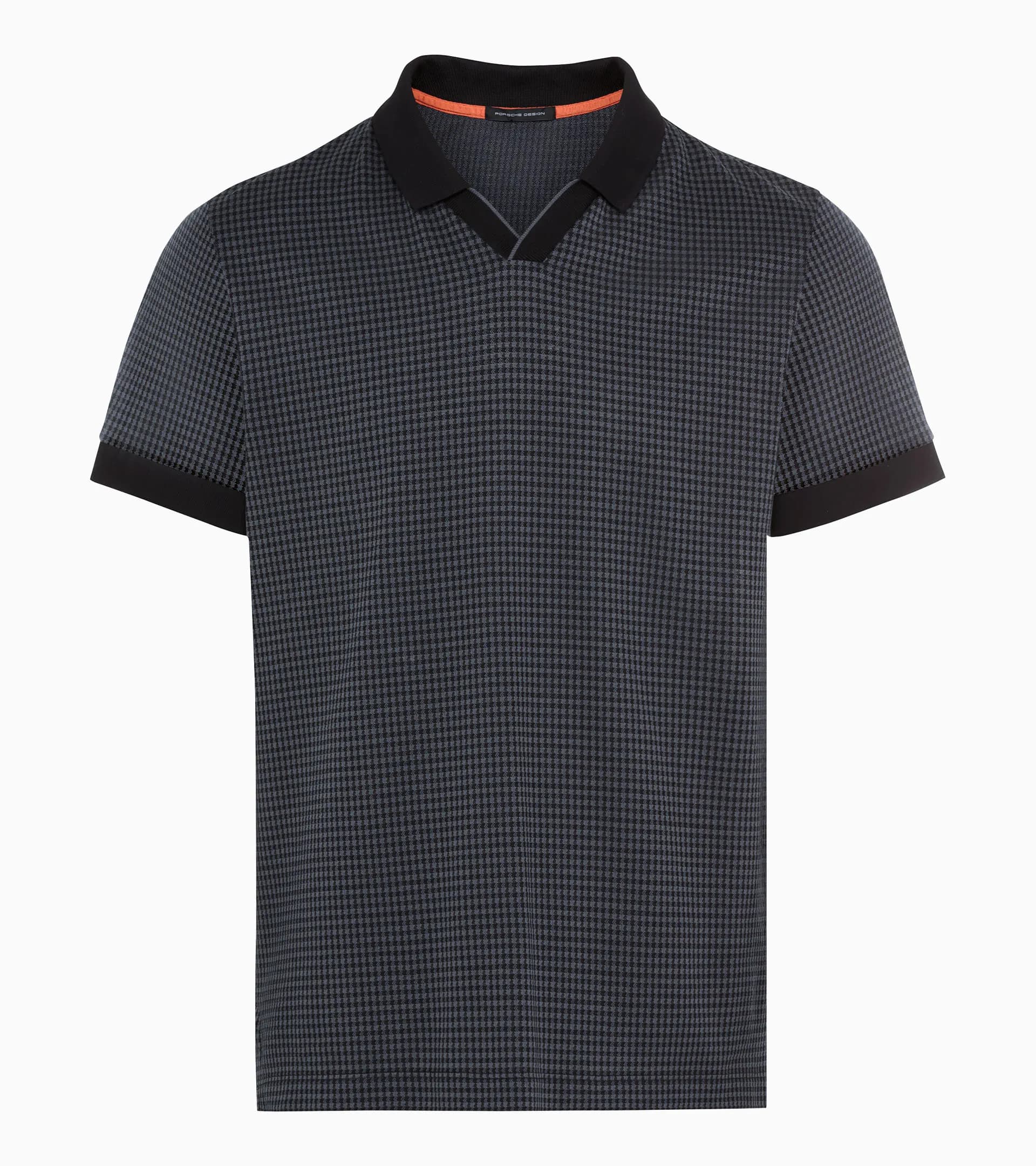 Exclusivo polo de jacquard de Porsche Design con llamativo patrón Pepita. Corte recto deportivo.