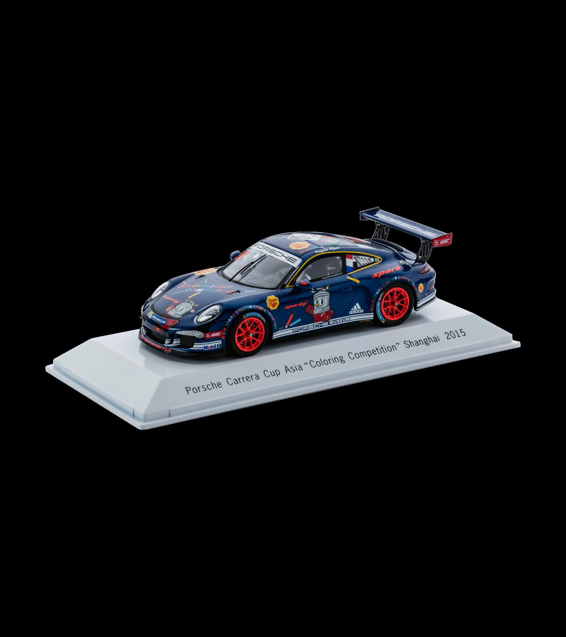 El Porsche 911 GT3 Cup es un vehículo de competición GT casi de serie de Porsche que se utiliza en la Porsche Carrera Cup y en la Supercup. La maqueta para coleccionistas reproduce el vehículo que hizo latir con fuerza los corazones en la carrera de Shanghái de 2015.
