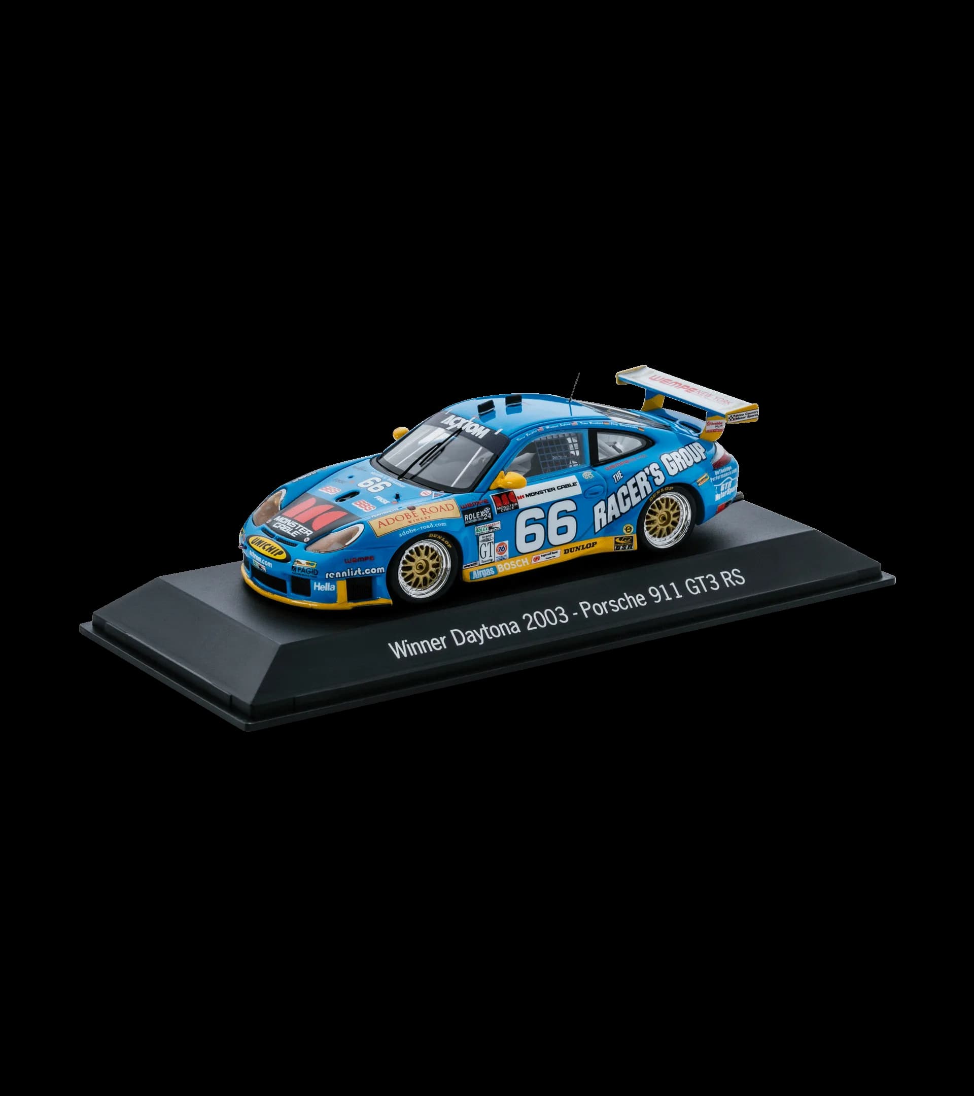 Valiosa maqueta para coleccionistas de plástico y metal del Porsche 911 GT3 RS, vencedor de Daytona en 2003. Edición Museo Porsche.