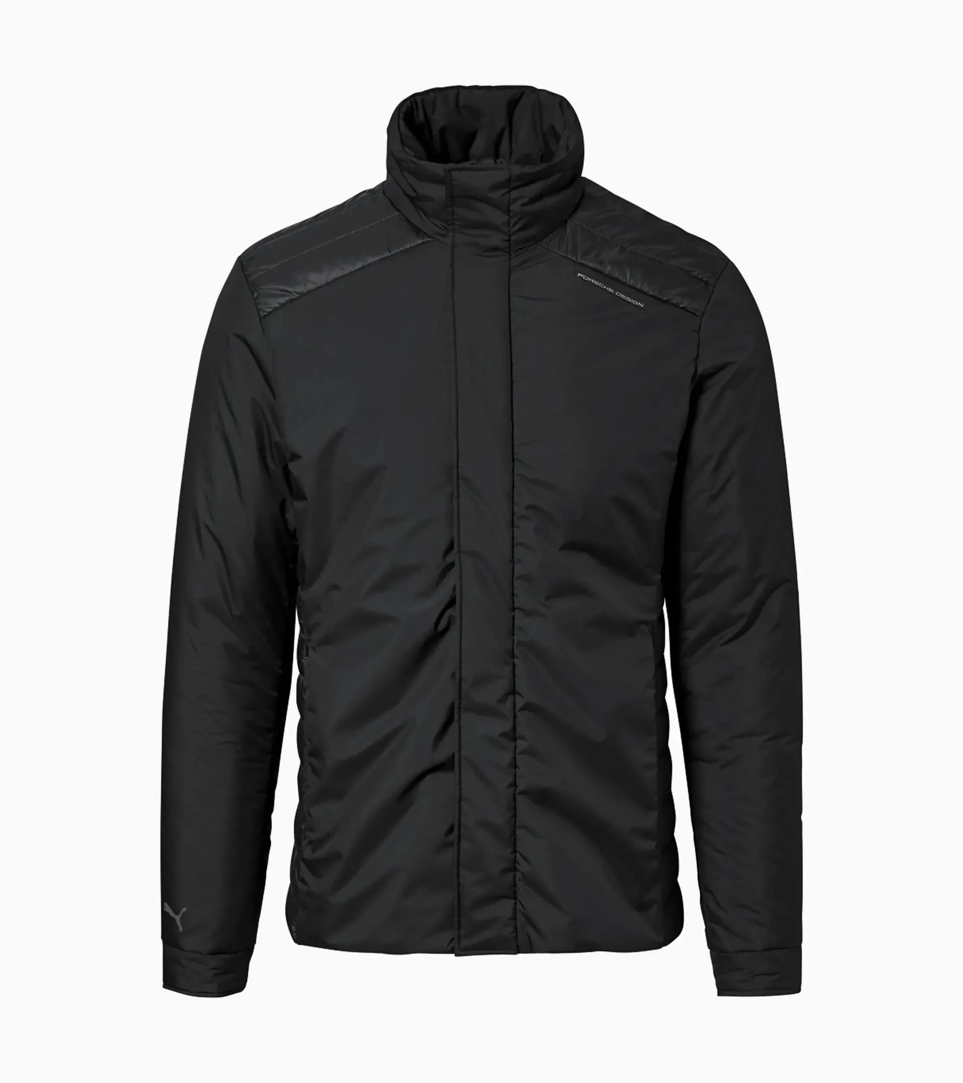 Tu punto de mira: las luces de la ciudad. Con el estilo del "Urban Racer" con un llamativo pespunteado inspirado en los deportes de motor en los hombros y los laterales, la Racing Jacket de Porsche Design tiene ya solo a la vista más potencia. Los botones de presión en los puños y los bolsillos ocultos laterales con cremallera invisible realzan el dinamismo del diseño. La funcionalidad no se queda atrás.Hidrófuga, transpirable y cálida, la chaqueta será su acompañante para todos los caminos. Y también sostenible: el acolchado de vellón Thermore's® Thermal Booster se elabora al 100 % de botellas de plástico PET recicladas y aumenta sus propiedades aislantes cuanto más frío hace. Cuando las temperaturas bajan, el efecto calorífico puede aumentar hasta en un 20 %.