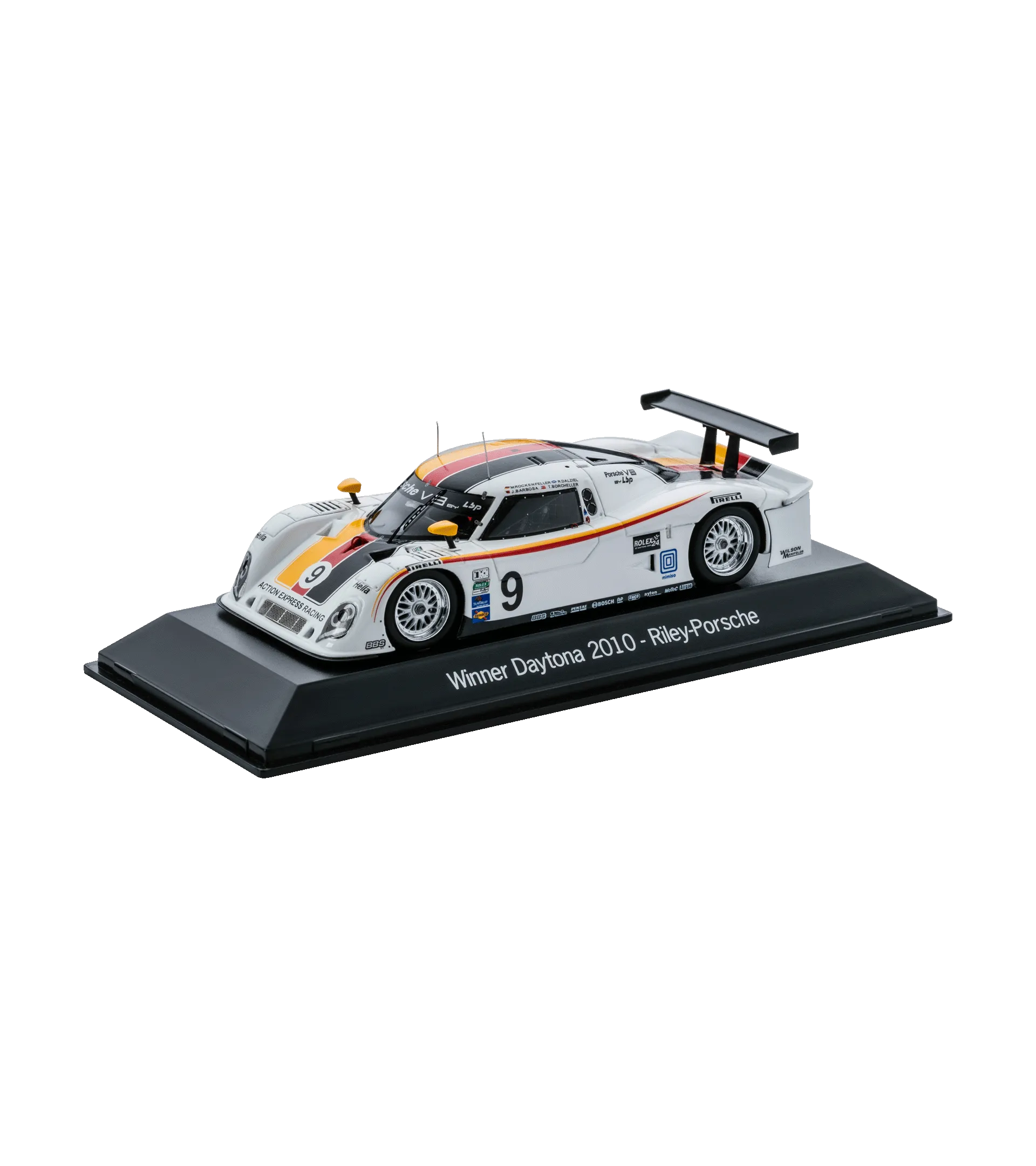 Riley Technologies LLC es un constructor y equipo de carreras de automóviles estadounidense especializado en el diseño y fabricación de vehículos de competición completos, así como en el desarrollo de prototipos para aplicaciones de carreras y producción. Los chasis Riley han ganado siete veces las 24 Horas de Daytona con diferentes motores. Esta maqueta es una reproducción del vehículo vencedor, un Riley Porsche, en las 24 Horas de Daytona del año 2009.