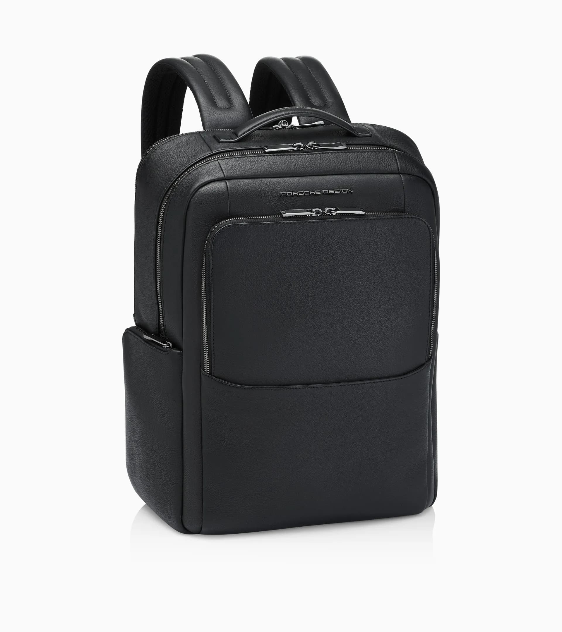 La suave piel de becerro encaja a la perfección con las características del producto: la colección Roadster Leather de Porsche Design se ha diseñado para satisfacer las grandes exigencias de las personas que viajan por trabajo. La gran mochila de cuero Roadster L de Porsche Design representa la elección ideal para el día a día. Como ocurre con todos los bolsos y mochilas de la serie, está llena de detalles inteligentes: el compartimento para portátil de 15'' tras el gran compartimento principal se puede abrir por completo en el momento de la facturación. El compartimento independiente con organizador profesional, el bolsillo delantero adicional y los bolsillos laterales con cremallera pueden almacenar todos los utensilios importantes. Los objetos de valor, como las llaves, se pueden guardar en el bolsillo oculto en el eslabón. Una parte trasera acolchada y las correas de hombro suavemente acolchadas aseguran que la mochila de cuero sea extremadamente cómoda de llevar a pesar de su volumen.