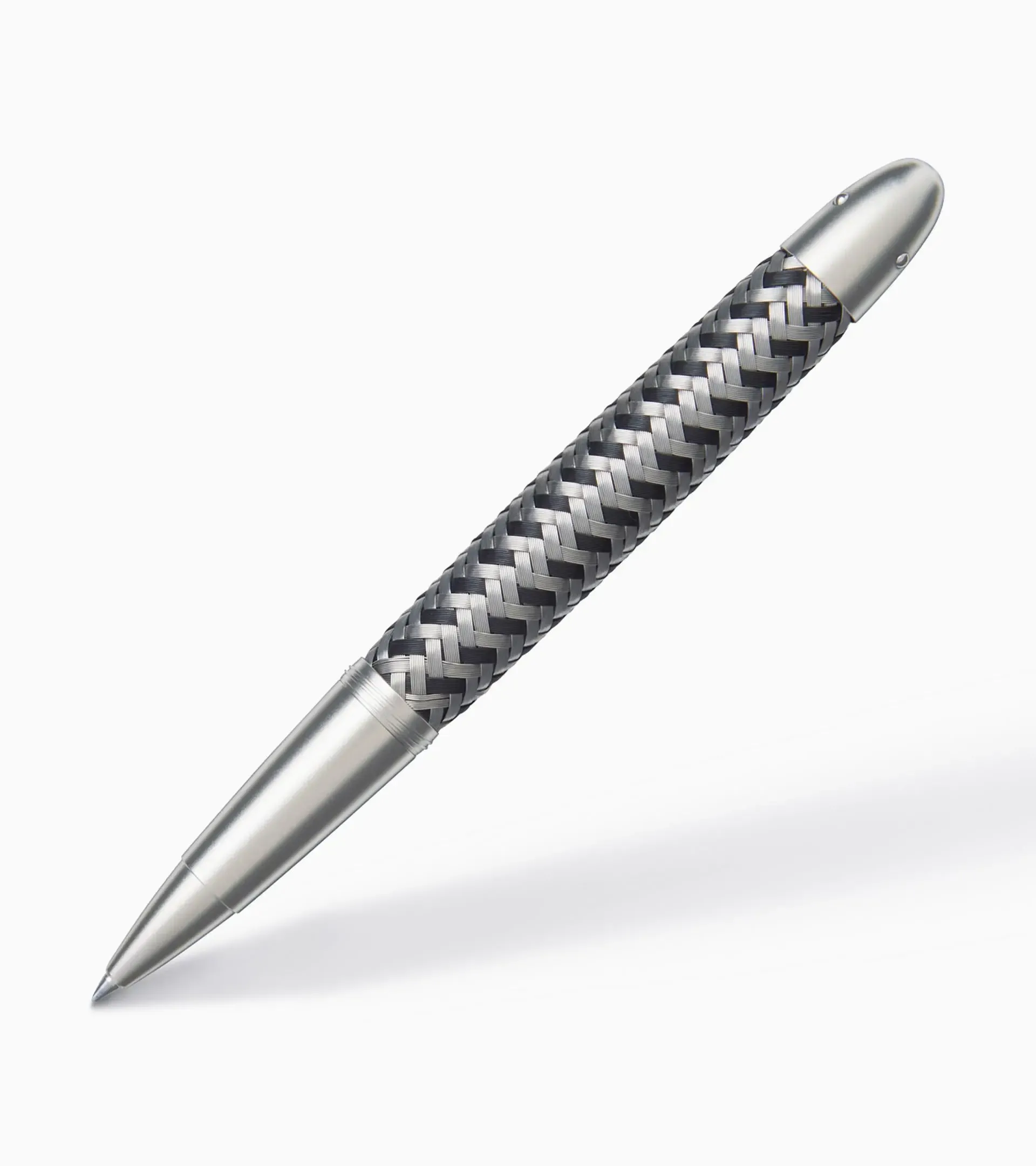 Ultimate performance in an instant: the Porsche Design Tec Flex Rollerball Pen is a unique expression of the power, ambition and technical perfection of Porsche Design. In motorsports, the flexible, corrosion-resistant and hard-wearing qualities of woven stainless steel are used to protect sensitive electronics. In the Tec Flex series, the same high-tech weave not only lends these pens their exclusive look, but also a distinctive texture that rests easily in your hand. All Porsche Design Tec Flex writing utensils are forged from virtually indefatigable stainless steel. For the black/steel models, black resin threads are interwoven with the metal. Delicate and robust, dynamic and timeless: a statement in steel and ink.