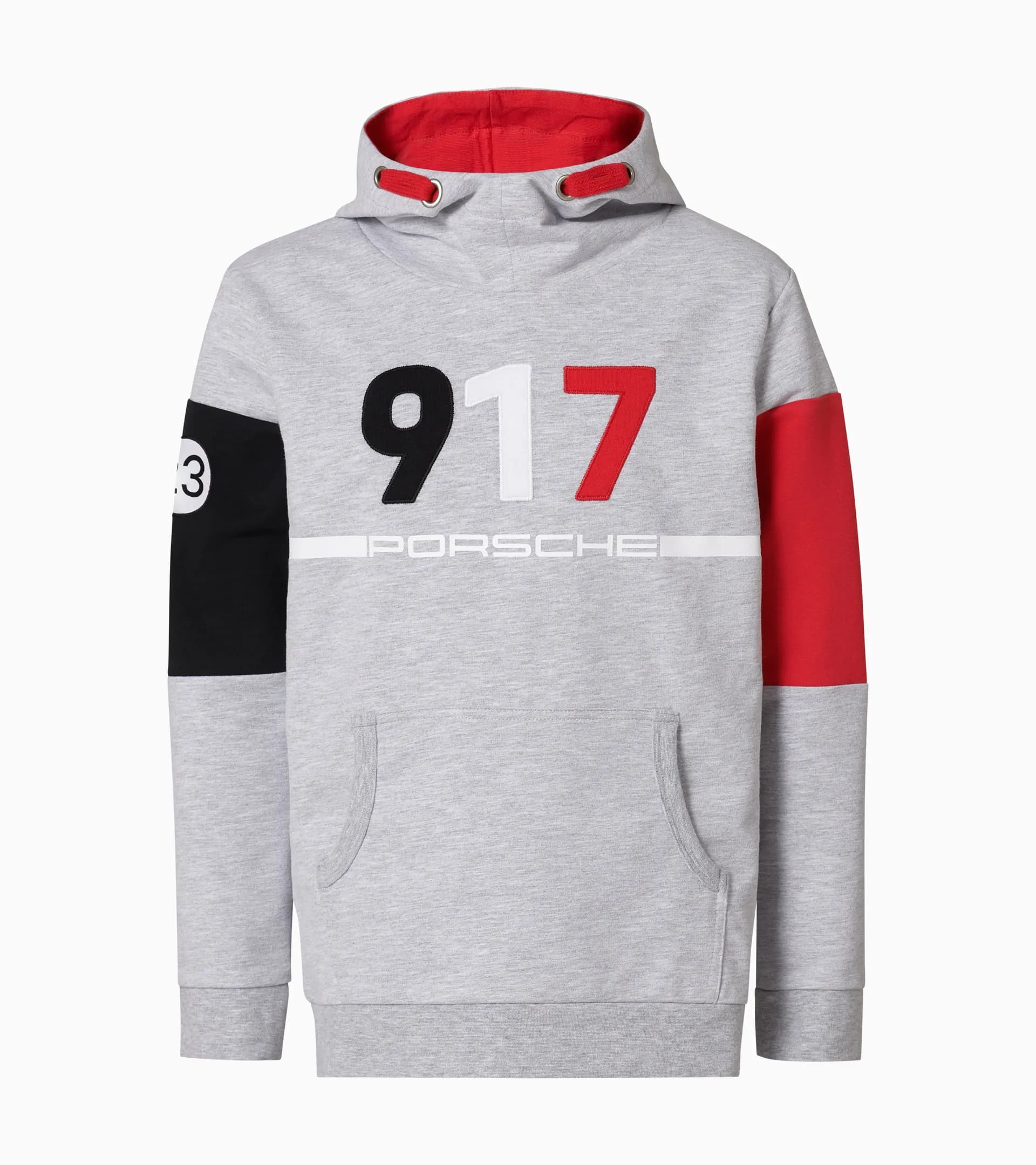 Sudadera infantil con capucha. Con aplicación 917 bordada y estampado Porsche en blanco. Material transpirable suave.