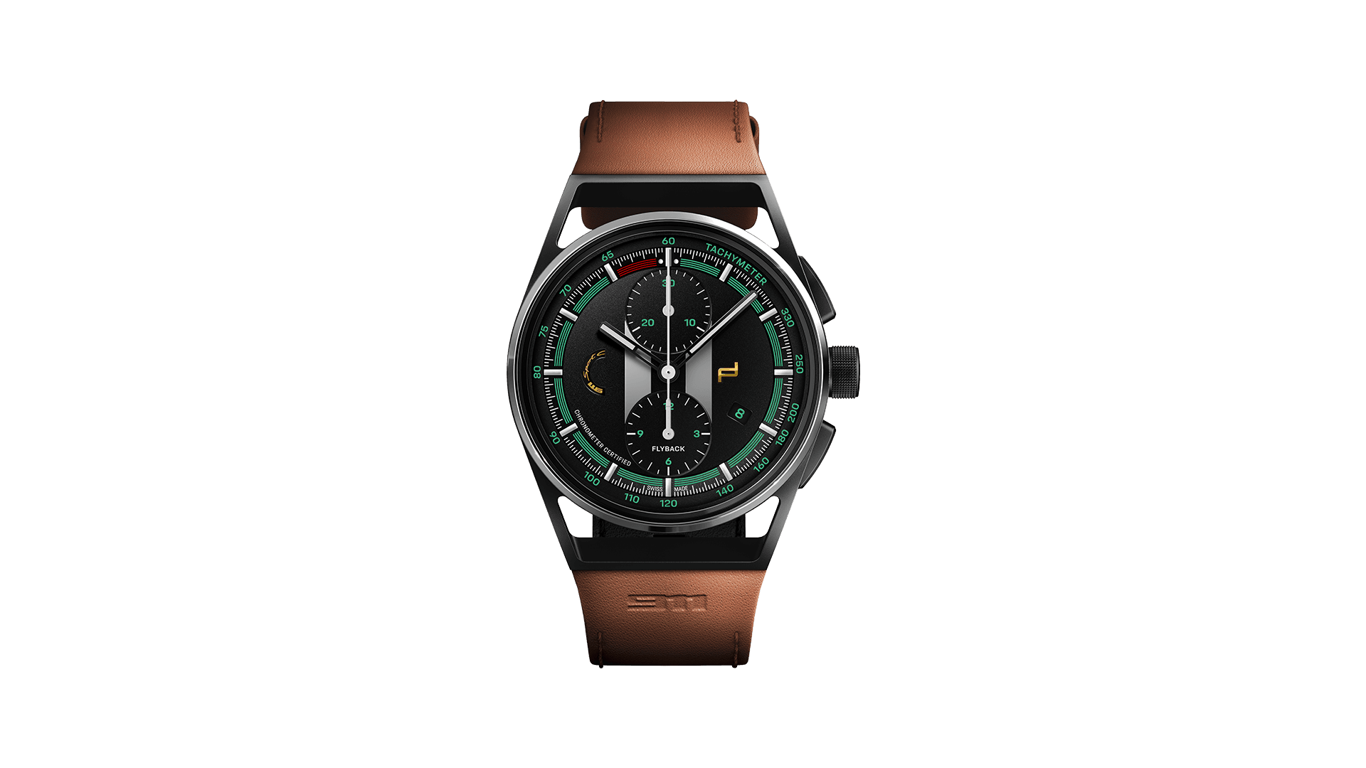 La aguja en color Blanco del cronógrafo y los números y diales en color Verde de Heritage Design revelan a primera vista la década en la que se inspiró el cronógrafo 911 Sport Classic. Por primera vez, Porsche Design ofrece la posibilidad de personalizar la esfera. Además de la clásica esfera en color Negro (mate) de Heritage Design, también se pueden seleccionar las icónicas franjas Sport Classic en color Gris Sport claro o el estampado Pepita tan típico de los años 60, que también fue el elegido para revestir el interior del vehículo.