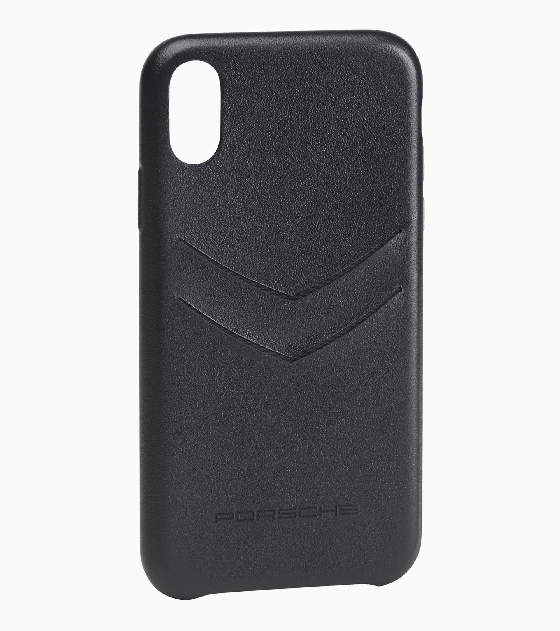 Porsche Performance - for your pocket: High-quality iPhone case for the iPhone® XR in a timeless design. Decorated with embossed "PORSCHE" lettering in the style of the Porsche Crest. Leather surface with two slots for credit card-sized cards. Push buttons in the case for volume up and down buttons and cut-outs for camera, loudspeaker and microphone. Includes high-quality gift box with viewing window.