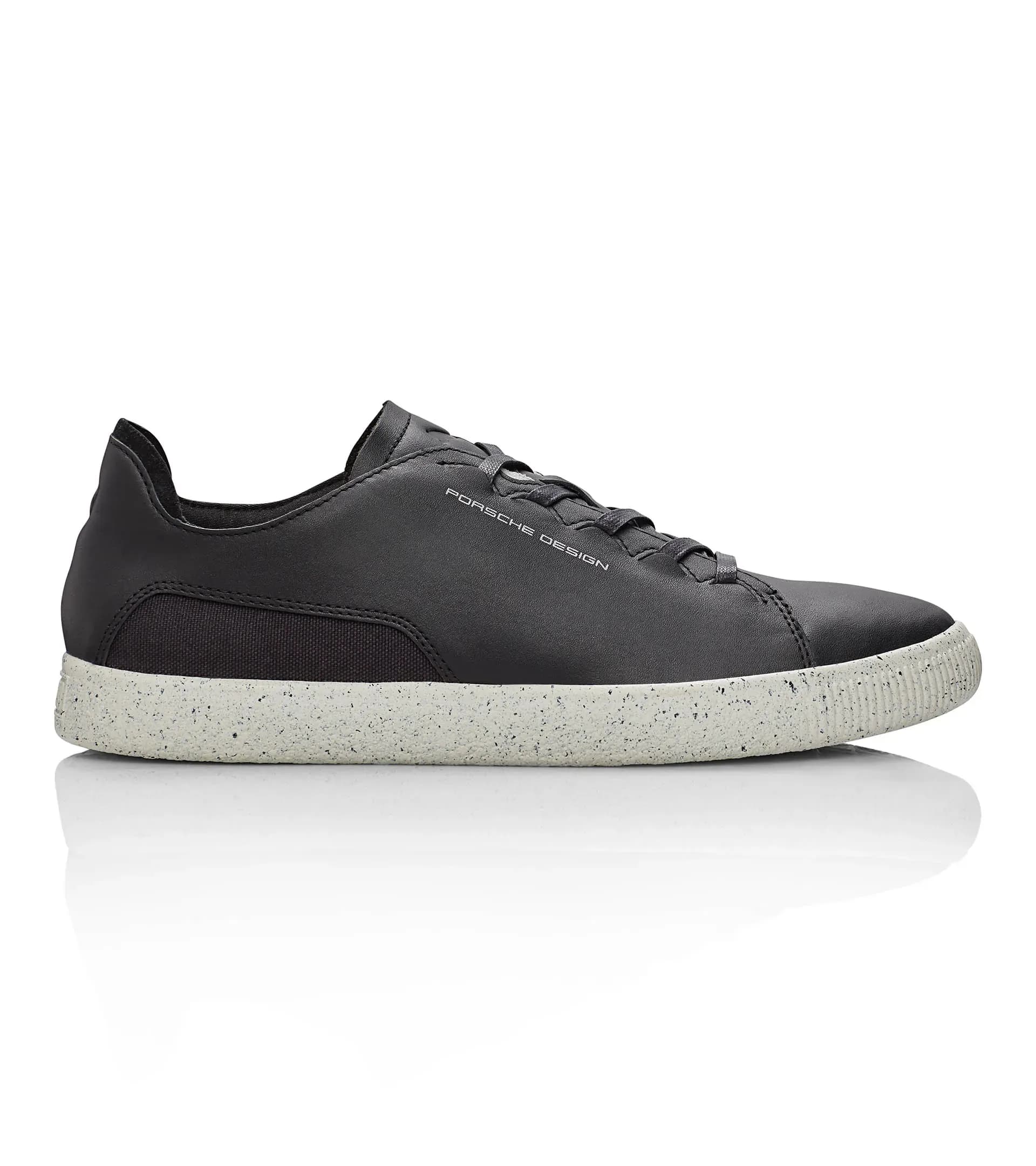 Fine. Élégante. Durable. La Porsche Design Court DLX S est la sneaker la plus durable de Porsche Design. La chaussure à la fois moderne et classique fusionne une silhouette de tennis classique en cuir de grande qualité sans chrome avec des matières écologiques. La semelle intérieure contient du Better FOAM avec 30 % d'algues naturelles, les lacets sont en polyester recyclé avec un revêtement en cire et une matière recyclée a été utilisée pour la doublure et la semelle intermédiaire. Les inclusions visibles dans la semelle lui donnent un aspect presque graphique et donnent à la basket un look unique et personnalisé. Les inserts de forme dynamique en lin (coton biologique) et la coupe inhabituelle du laçage soulignent le caractère exclusif de la chaussure. Style durable, durablement impressionnant.