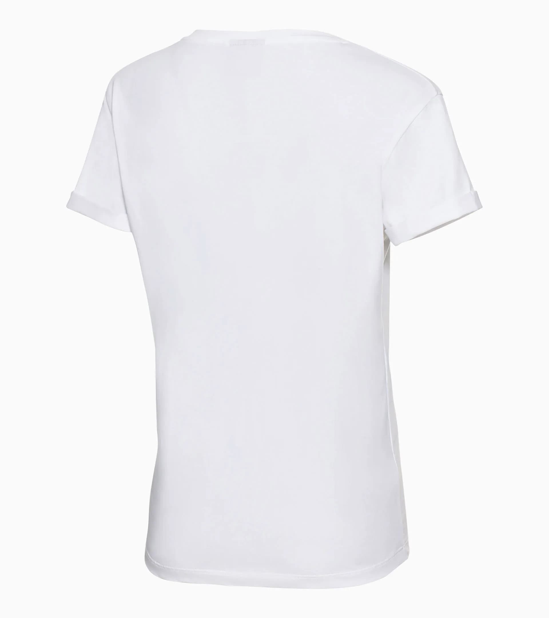 Le compagnon idéal au quotidien : le T-shirt pour femme de la collection Essential. Le badge écusson lui confère une note élégante et discrète.
