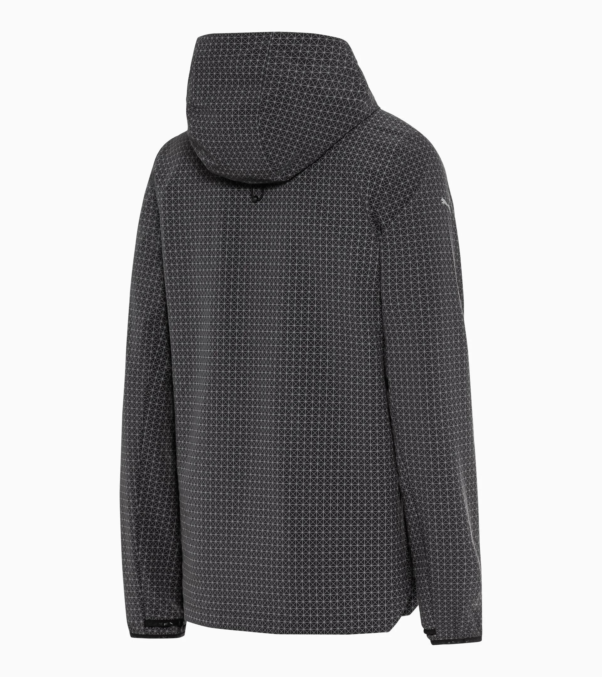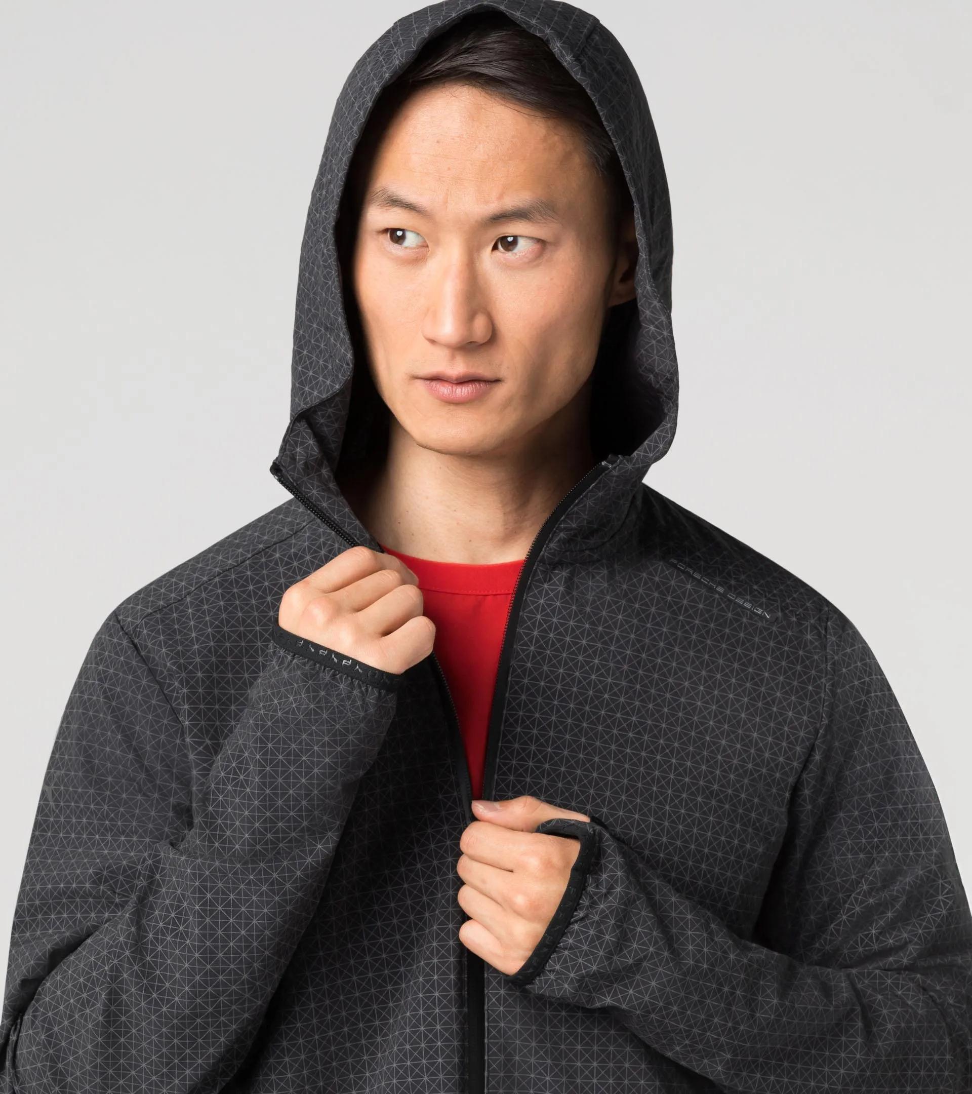 Extrêmement légère, imperméable et entièrement réfléchissante, la veste Active Porsche Design impressionne par sa combinaison parfaite de fonctionnalité et de design unique.Un motif quadrillé réfléchissant développée exclusivement pour Porsche Design, assorti à la structure caractéristique de la collection Active Porsche Design FW 22/23, vient caractériser le look. Grâce à la matière du tissu extensible dans les 4 sens, la veste de course non seulement se démarque par son aspect sportif, mais accompagne également chaque mouvement. Même la coupe est dynamique : avec une capuche ajustée et réglable en largeur, des manches préformées avec passants pour le pouce et des poches latérales élégantes et intégrées. Une fermeture éclair caoutchoutée sur le devant, des logos réfléchissants et une poche intérieure avec fermeture éclair dans les coutures viennent compléter la subtilité de la veste de sport.